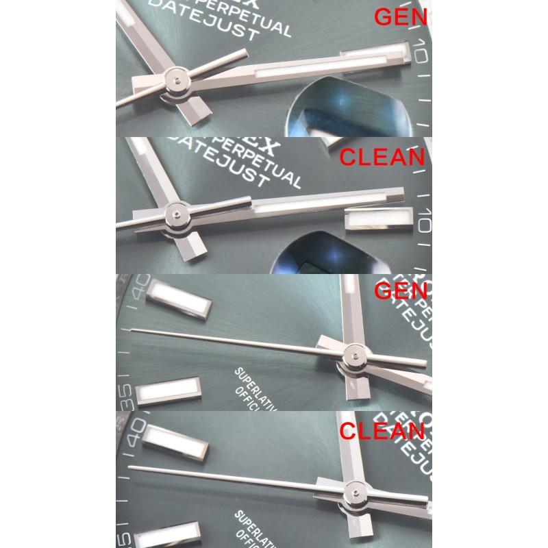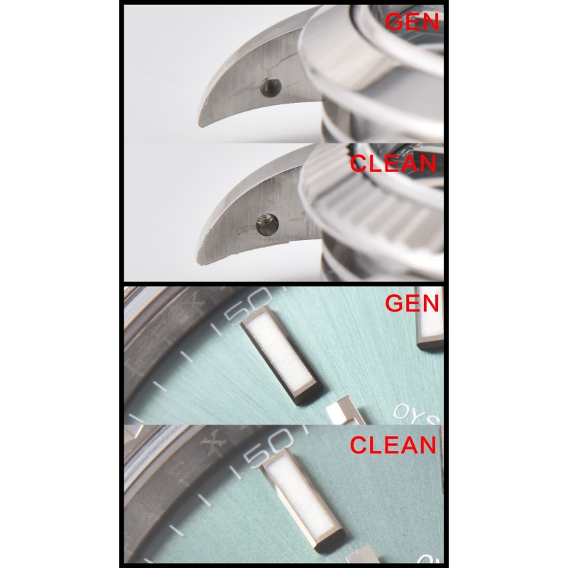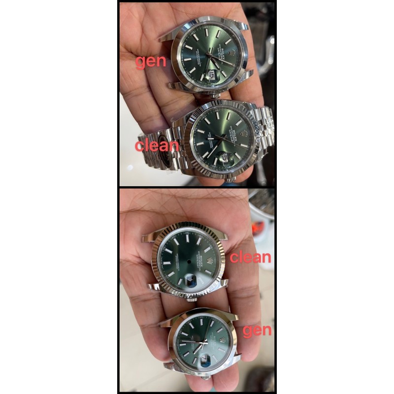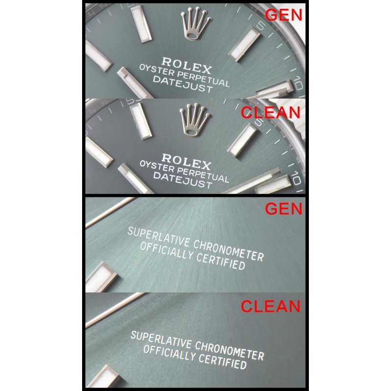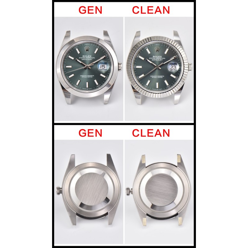 clean厂/C厂 劳力士126334 DATEJUST 日志 1:搭载一比一超级3235一体机芯 无卡度机芯装饰 机芯及其稳定 2:整表904L精钢 /搭配ar厂钢带 以及ip真空电镀铂金牙圈 /掉色免费更换 3:表盘太阳纹无限接近原装 4:全市场唯一日历字体对版 后续1-31号挨个字体真假对比 5:唯一做到指针夜光/字钉夜光 做到同色 因为都是第三方工厂加工+自购瑞士 c1+c3夜光粉 6:字钉/皇冠唛头钉 全白金电镀处理 虽然clean的款式不多 但是几乎款款均为精品 彻底解决世面上的大部分日志痛点,只为极致而生 clean-datejust 独特的橄榄绿色 相似度接近90%以上