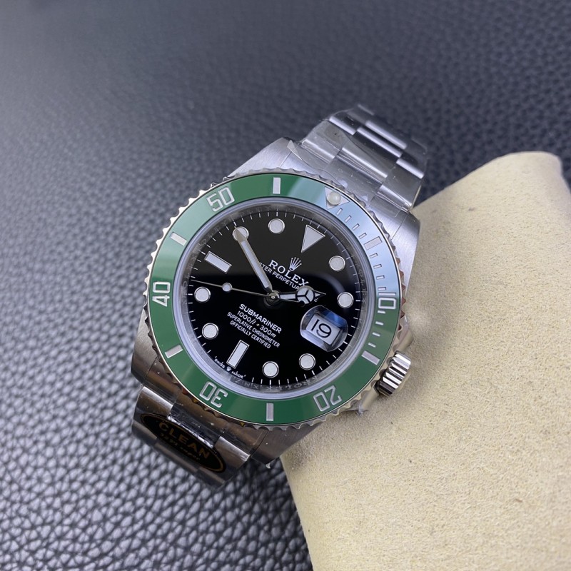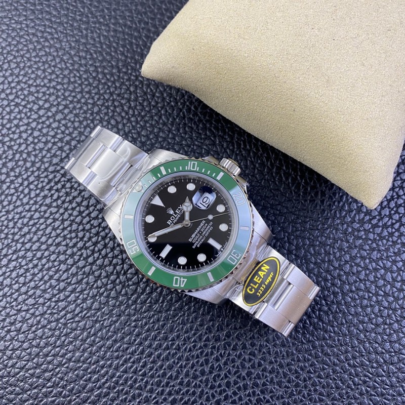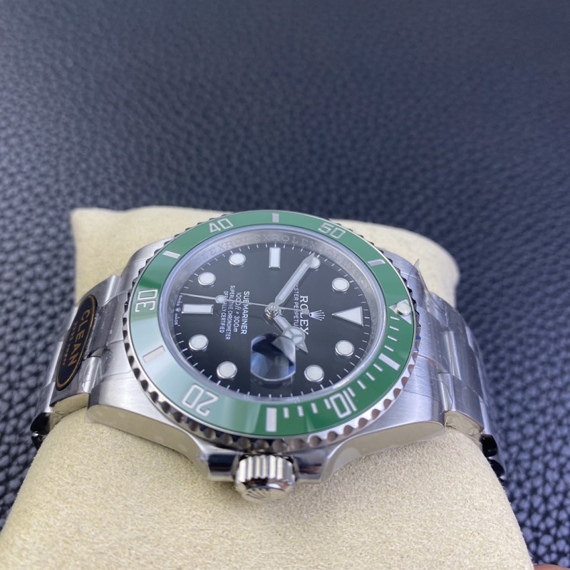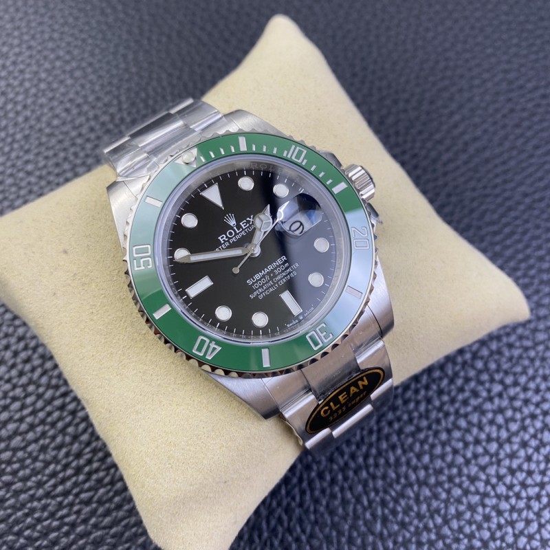 Clean厂/C厂 劳力士126610 submariner黑水鬼绿水鬼41mm 1:搭载一比一超级3235一体机芯 动力72小时 无卡度机芯装饰 机芯及其稳定 2:整表904L精钢 /搭配ar厂钢带 3:表盘使用市场独家"锅盖字面" 无面脚设计 ps:有面脚的成本低很多 4:全市场唯一日历字体对版 后续1-31号挨个字体真假对比 5:唯一做到指针夜光/字钉夜光 做到同色 因为都是第三方工厂加工+自购瑞士 c1+c3夜光粉 6:字钉ip白金电镀 7:陶瓷绿圈使用独家clean绿圈v4版本 颜色无限接近原装 clean陶瓷类配件 无需赘述 高品质象征 /谨防假clean圈 注意区分 8:温润如玉夜光珠 不死白 clean陶瓷圈+夜光珠完美复刻 虽然clean的款式不多 但是几乎款款均为精品 彻底解决世面上的大部分水鬼痛点,只为极致而生 clean-submariner