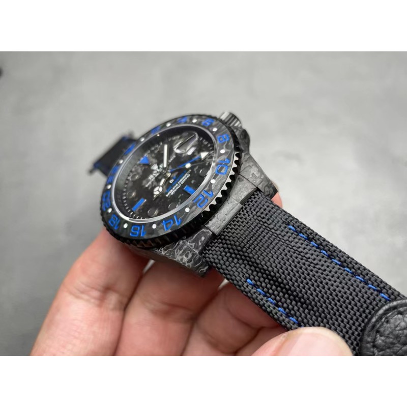VS新品Ntpt格林尼治,碳纤维表壳佩戴轻便,外表坚硬,每一只腕表都拥有独一无二的碳纤花纹,纹路碳花超越市场所有副本,尺寸40X12.4吻合原装,3186机芯。