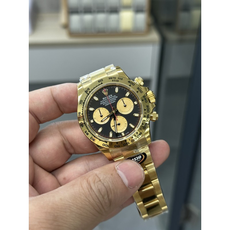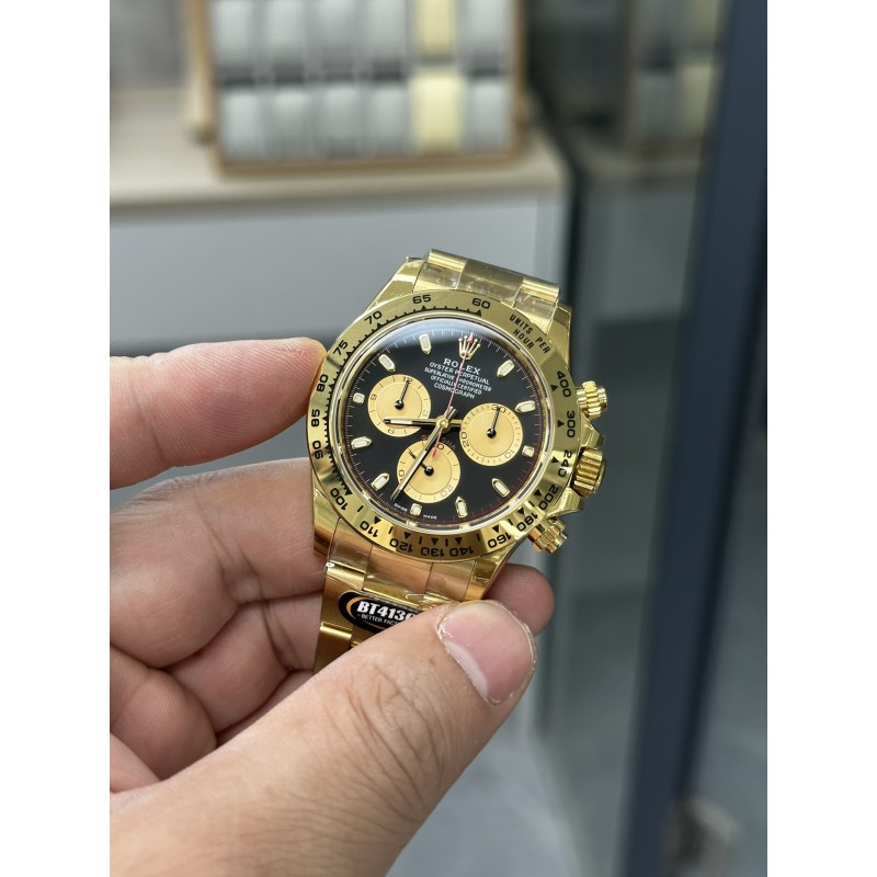 【BT Factory2024墙裂推荐】市场最高版本 劳力Rolex迪通拿腕表!型号:116500 尺寸:40mm×12.2mm 功能:时、分、秒、计时显示 机芯:4130 动力储存:72小时 镜面:蓝宝石 字面:白面,黑面 材质:904L精钢 表带:AR厂钢带 圈口:陶瓷圈镀铂金膜 夜光:瑞士夜光涂料 防水:100米 重量:148克 BT Factory出品,劳力士迪通拿九大亮点: 1BT厂迪通拿4130机芯腕表厚度12.2mm,市场其它版本7750假夹板机芯,通过压低针杆,改薄机芯厚度。稳定性极差,不能做到和正品一致。 2采用4130机芯(原N丹东厂),背后夹板采用雕刻和电镀字体更加光亮。 3钢带采用原AR厂。其次,表扣再次升级比例尺寸。 4表壳采用N工厂对照2022最新版加工,更新底盖抛光亮面尺寸和牙边的弧度。 5表针采用Buff工厂再度升级,三枚小秒针和大秒针,均按照单支定做且实心针套,针帽呈现蘑菇圆头状。 6陶瓷圈Cerachrom再升级镀铂金膜字保持不变色,且更新字体粗细。 7字面对照2022最新版白面,采用瑞士油墨加韩国陶瓷调制打磨做到有厚质感纯乳白色与原版无色差。告别市场之前发黑的“死白”色。 8刻度字钉每粒独立CNC雕刻而成,每粒手工打磨边缘。夜光采用瑞士夜光粉与正品无色差。最终效果是市场最接近原版发光视觉。 9玻璃采用全通透蓝宝石,无边缘视觉。目前,市场的玻璃边缘呈现偏圆弧肥厚的视觉。只有BT厂的细节做工与正品一致。 BT Factory2024匠心力作 欢迎各位表友品鉴!