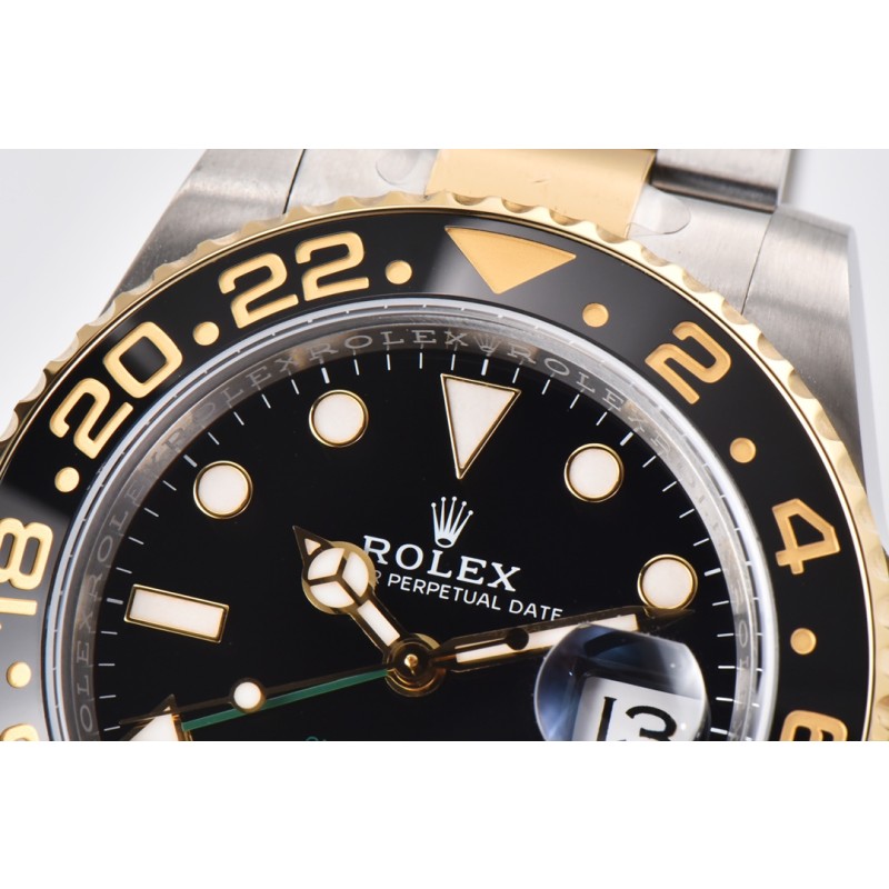 clean厂 c厂 116713格林尼治gmt间金 陶瓷圈字体细节对比,12点位三角部分,顶角,以及底角部分,尖角位置 全部做圆角处理。与原装达到一致。 字体部分,深浅只是一方面,原装工艺为,字体底面全部垂直90度于字 体的直身,做到这种效果,只能模具一体成型,激光打字会出现斜边,以 及底纹粗糙,崩边等一系列问题。 字体深度与原装一致,下沉0.13mm。另外字体边缘圆角打磨处理。 电镀颜色也是经过数字调试,市面上大多为,纯黄金色,真品的略微带一 些红色。观感上来说,会舒服许多。 表壳外观,全部采用904L壳身,完美还原gmt整个壳形,修正gmt转圈手感。皇冠 把头部分也展现出,浮雕皇冠效果。采用和原版一致的3186机芯。 底盖部分,也和原版一致,抛光,拉丝,以及表壳底部拉丝。底盖与表壳的契合程 度,几乎一致。把头与表壳缝隙可以自行对比。内影部分,全系列全部修正字母 “R”的尾巴,微微凸起。如果真的要吹毛求疵,那就是内影部分,底纹没有原版细 腻,受限于,国内激光技术以及设备。 本次C厂推出的是gmt116713间金款,因为第一支原版开模,已经完全损 坏,所以临时又购买一只,细节上会有些许差异。但是在对比的过程中,还 是会以图文的方式进行对比,不会避重就轻,虽然真品版本细节上会有差异 ,但是整体工艺不会有太大偏差,未来的每一款,都会以这种的真假对比的 方式呈现给表友,有则改之,无则加勉。 因为版本差异,但是日历字体会有差异,这个希望理解,c厂除了对于陶瓷 圈口制作在行,在表盘字体印刷,以及日历,也是重中之重。因为页面数量 的限制,就不一一赘述。