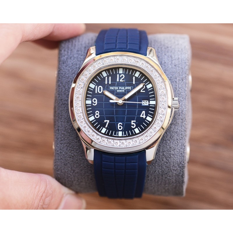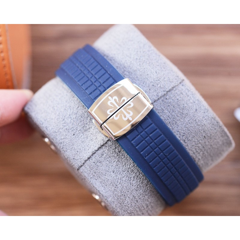 3K百达翡丽AQUANAUT系列5168G-001腕表,精钢表壳搭配蓝色天然橡胶表带,蓝色渐变的浮雕