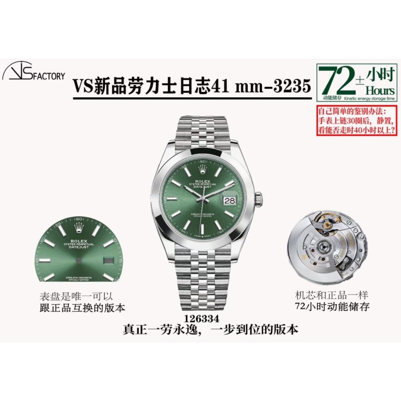 VS新款:41劳Li士日志-3235机芯 VS3225机芯,唯一72动能储存版本。而且质量稳定,几