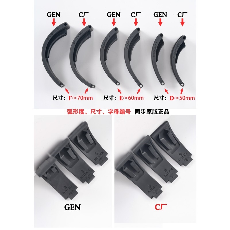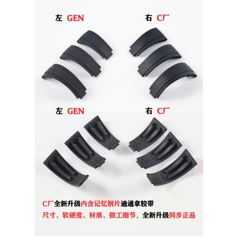 C厂独家定制迪通拿daytona氟橡胶 依旧是力争行业配件标杆,只为追求极致,改装玩家的福音。不论是橡胶夹弹力钢片的回弹力度,还是橡胶手感,以及边角打磨处理,又或者胶带内侧的减震区的外观处理,完全参照原厂胶带一比一处理。敬请期待。 适用于迪通拿/40mm游艇