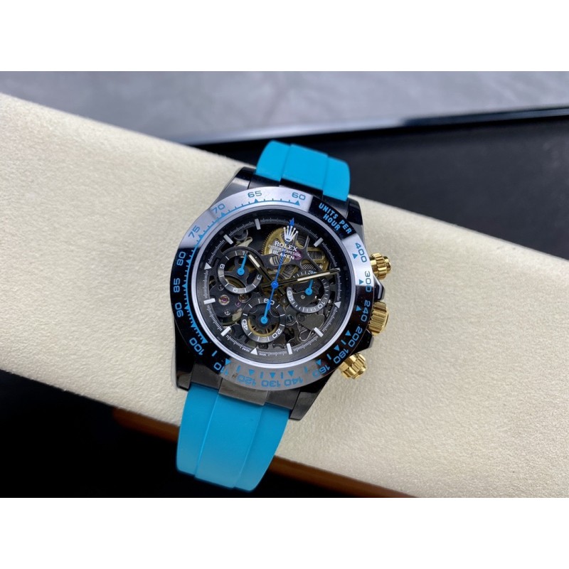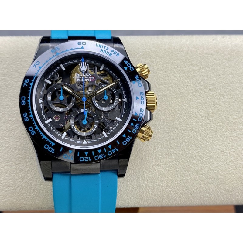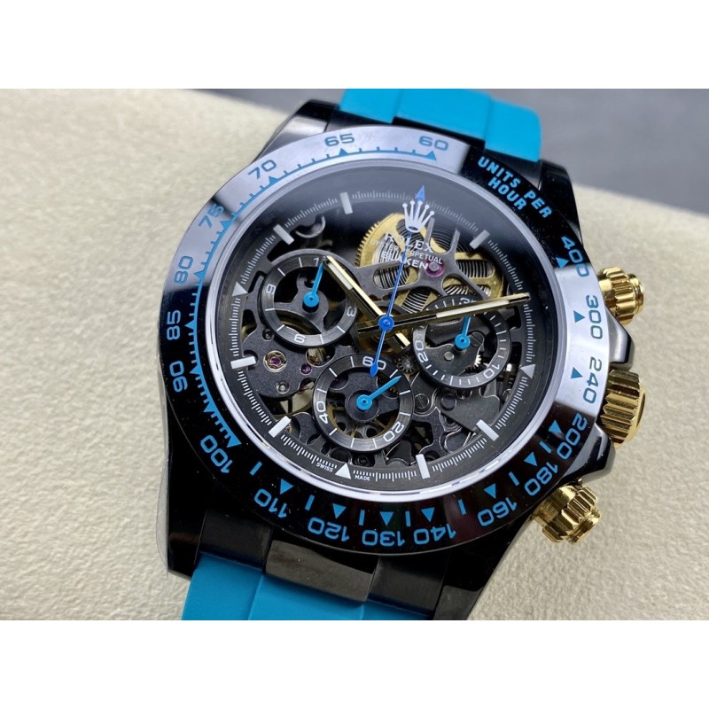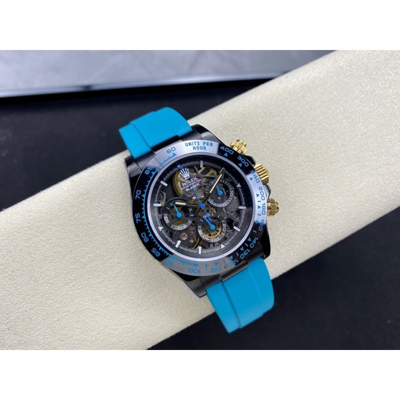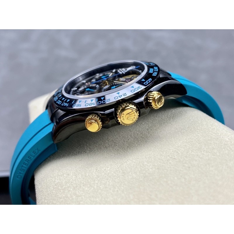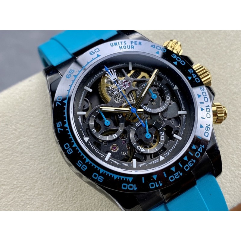 “时间,从未如此令人惊艳。” GET公司引以为傲的全新镂空劳力士迪通拿腕表,将为您的手腕注入更多时尚与品味。通过其独特的设计,这款手表不仅可以告诉您时间,更能展示您的个性与品味。GET公司独家花费巨资研发复刻和4130一样功能级别,走时精准,稳定, 真动能摆轮。每个拆件都以非常高的精度逐一拆装,进行缕空和手工制作切角,让缕空、主板,桥梁甚至主发条盒完全展开,大多数部件经过涂层、斜切以及抛光等精湛工艺,全缕空展现出来、赏心悦目! 别具匠心的镂空设计,将整个机芯镂空呈现,让您不仅可以清晰地读取时间,更能领略机械时钟的精密内部结构,营造出整个手表优美的空间感。 玻璃上下面采用了高透镀膜蓝宝石防刮伤材料,让您可以随时欣赏机芯的运行。表圈采用定制表圈,为NTPT锻造碳材料和精密陶瓷圈,人工彩色宝石圈,一体加工成型、坚硬耐磨!而表带采用进口原版开模胶带,穿戴舒适,质感优良。此外,手表还配备了防水、防震等多重功能,让您在不同场合都能放心佩戴。外壳镀黑非普通电镀,采用与BLAKEN改装厂一样耐磨抗造的DLC涂层材料,其后期让消费者可以用时间验证其电镀技术含金量。 GET公司联合全力花重金真诚打造,以品质打动消费者,让体验其真正价值!现在就选择这款镂空手表,让时间成为您的独特标志,展现您的品味与魅力!