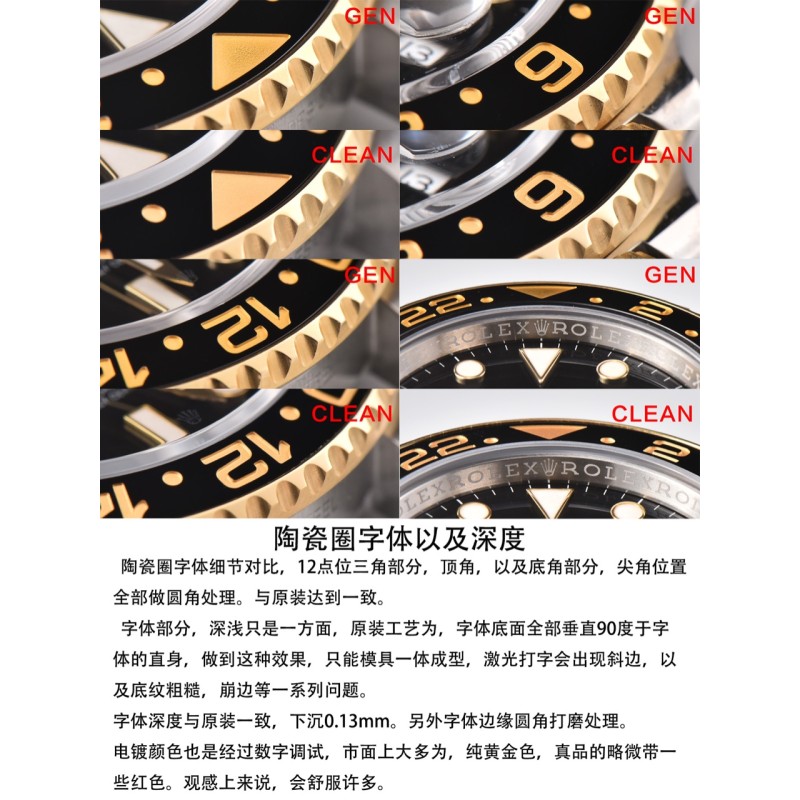 clean厂 c厂 116713格林尼治gmt间金 陶瓷圈字体细节对比,12点位三角部分,