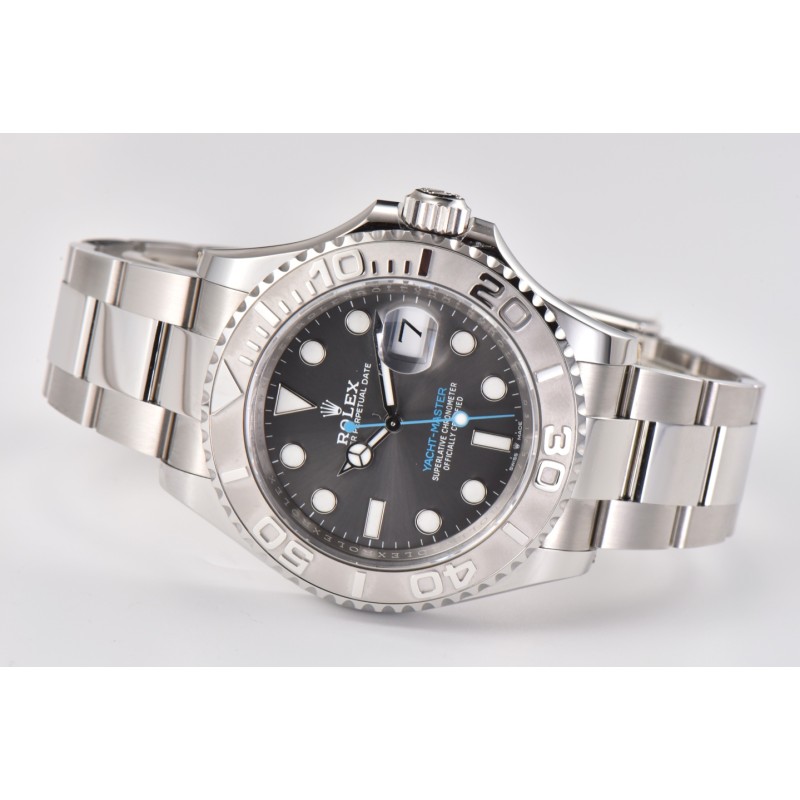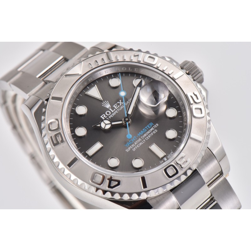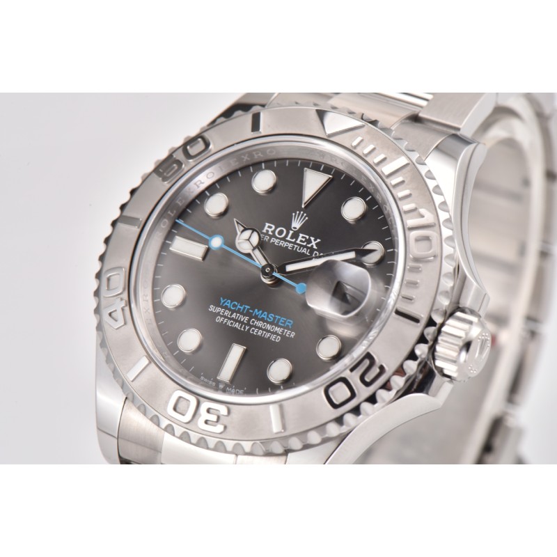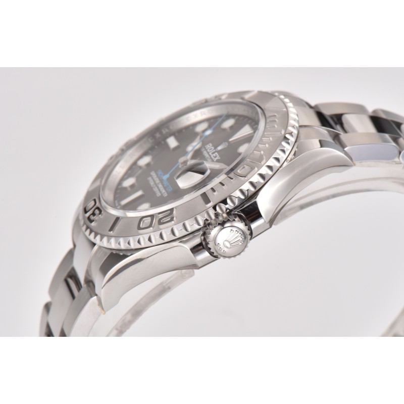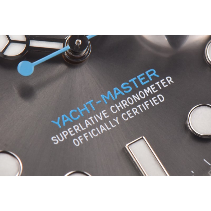 CLEAN/c厂推出游艇40mm系列 126622. ps/126655玫瑰金版本近期推出 1.左侧/右侧 GEN=真品 clean=clean厂产品 2.左侧灰色面因为在柔光箱中,显得色差有些大,但是在自然光线下,相似程度高达 95%以上,后面会放出自然光对比。 3.右侧蓝色面,c厂相较于真品而言,蓝色略浅一些,当然了,放射纹盘面的特点就是在 不同的光线下呈现出的颜色不一样,准确说,RGB色值在一个基准上,整体就不会有太 大的偏差。因为c厂在整个放射纹表盘上,例如水鬼盘,各种日志盘,以及本次游艇盘, 涉及到彩色放射纹的,均采用同真品一致的pvd电镀工艺,优点就是 保证出货颜色不会 因为批次不同,而色调上产生差异化。另外就是镀层薄,能够清晰看到底面的太阳纹路。 但是就是成本高。 4.本次圈口采用电镀pvd白金+防指纹镀膜,圈口材质也一般的黄铜更改为精钢材质,也 就是说,即便圈口有磕碰,电镀层破坏。露出底色,他也是和白金色是一样的。但是精 钢硬度高于一般铜材。也是在加工和成本上卯足了劲。
