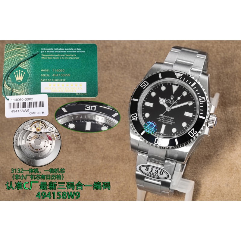 黑色1200 新品,升级版本,搭配升级一档一体机机芯,没空档,(低版本带日历空档)Clean厂/C厂 劳力士124060 submariner 无历黑水鬼40mm,41mm,6字位带皇冠,定制高端腕表三码合一款式,升级版本,实心中轴,品质保证[强][强][强] 1:搭载一比一超级3130,3230一档一体机, 动力72小时 无卡度机芯装饰 机芯及其稳定 2:整表904L精钢 /搭配ar厂钢带 3:表盘使用市场独家"锅盖字面" 无面脚设计 ps:有面脚的成本低很多 4:全市场唯一日历字体对版 后续1-31号挨个字体真假对比 5:唯一做到指针夜光/字钉夜光 做到同色 因为都是第三方工厂加工+自购瑞士 c1+c3夜光粉 6:字钉ip白金电镀 ,品质保证, 7:陶瓷绿圈使用独家clean绿圈v4版本 颜色无限接近原装 clean陶瓷类配件 无需赘述 高品质象征 /谨防假clean圈 注意区分 8:温润如玉夜光珠 不死白 clean陶瓷圈+夜光珠完美复刻 虽然clean的款式不多 但是几乎款款均为精品 彻底解决世面上的大部分水鬼痛点,只为极致而生 clean-submariner,认准C厂品质,实心中轴,细节决定一切,三码合一,腕表编码486489W9,腕表扣子编码5HF,品质保证