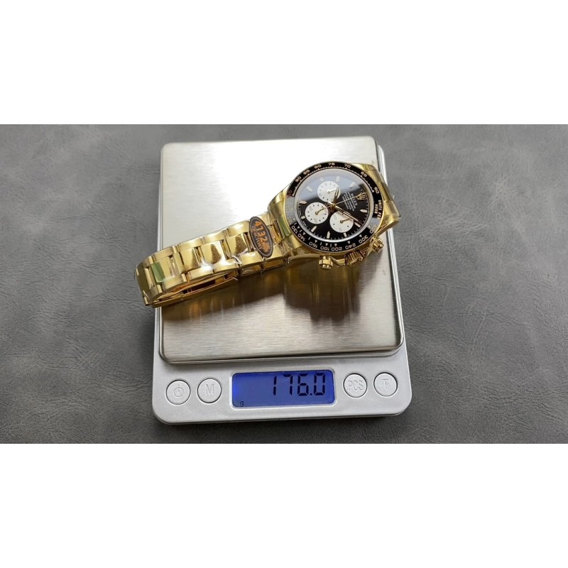 QF 配重4132 劳力士 加重175g迪通拿透底4132 官方定制款勒芒24小时耐力赛100周年,劳力士全新发布了一款宇宙计型迪通拿,黑色陶瓷字圈上数宇“100”用醒目的红色标示,以此纪念赛事的100 周年。经典的保罗纽曼盘面搭配 蚝式表带,此次腕表同样采用背透设计,背部机芯清晰可见。4132机芯40mm