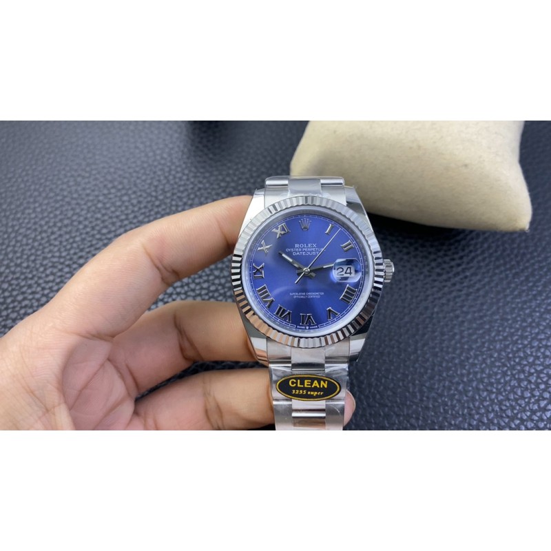 clean厂/C厂 新品劳力士日志型系列m126334-0026 罗马蓝盘 1:搭载一比一超级3235一体机芯 动力72小时 无卡度机芯装饰 机芯及其稳定 2:整表904L精钢 /搭配ar厂钢带 以及ip真空电镀铂金牙圈 /掉色免费更换 3:表盘灰色无限接近原装 4:全市场唯一日历字体对版 后续1-31号挨个字体真假对比 5:唯一做到指针夜光/字钉夜光 做到同色 因为都是第三方工厂加工+自购瑞士 c1+c3夜光粉 6:字钉/皇冠唛头钉 全白金电镀处理 虽然clean的款式不多 但是几乎款款均为精品 彻底解决世面上的大部分日志痛点,只为极致而生 clean-dateju
