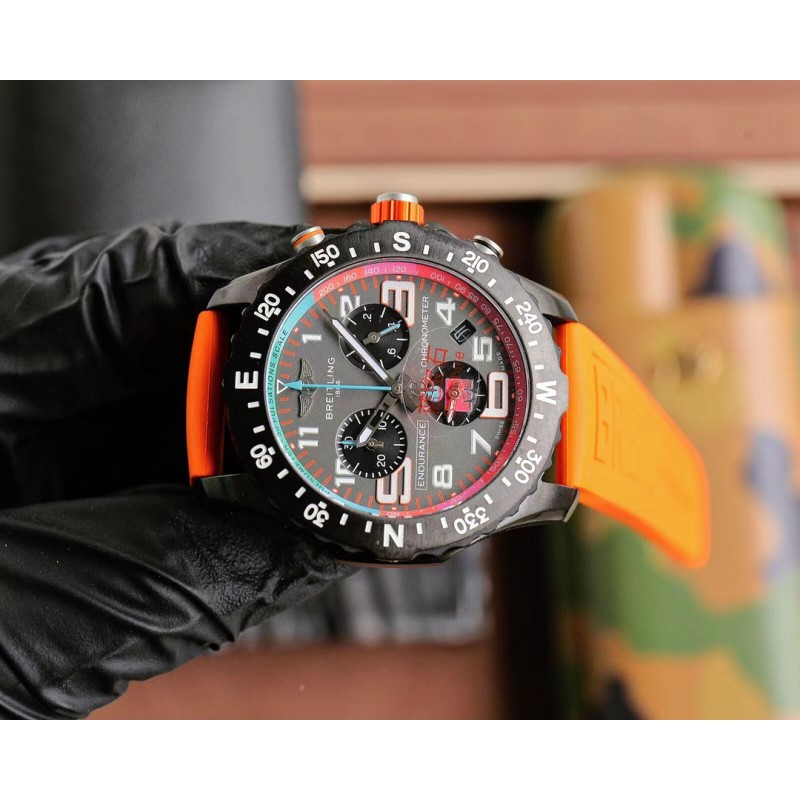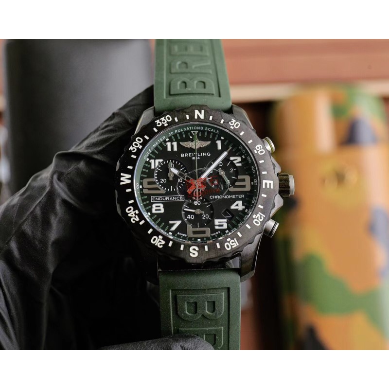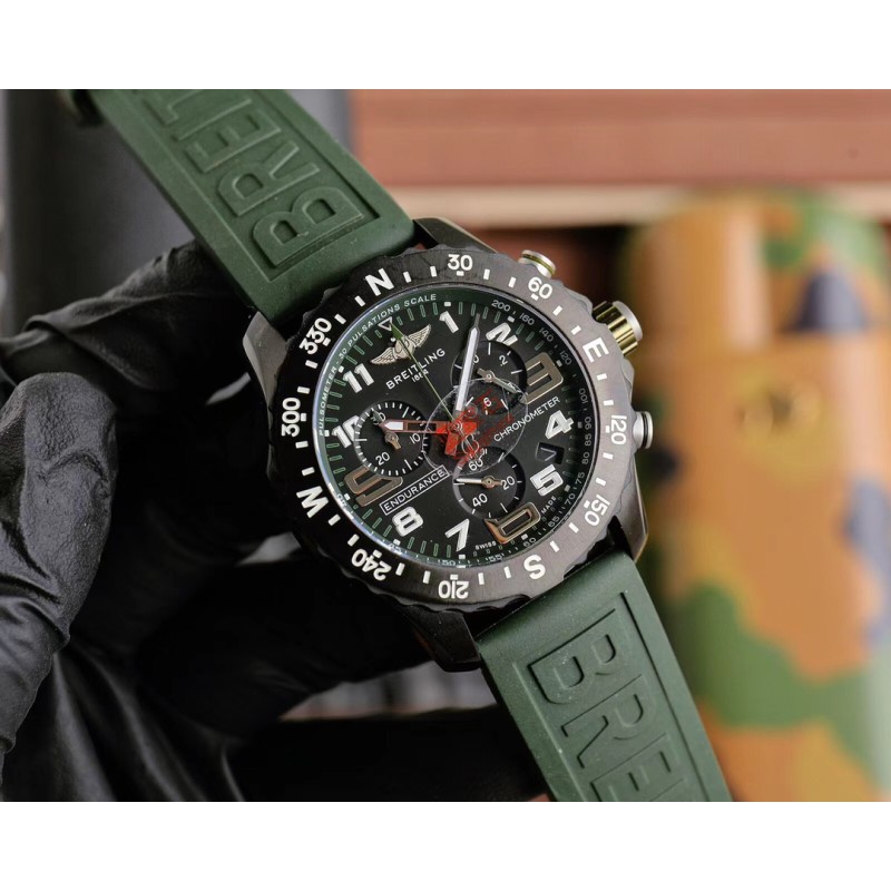 黑壳800 Breitling 百年灵推出一枚色彩醒目的新作品——是集高精准度、创新技术与动感色彩搭配配于一体的理想型奢华运动腕表,一经推出就吸引了众多专业竞技运动员与体育活动爱好者。1 44mm 精钢表壳使用数控精雕而成,线条精致流畅圆润,双向旋转表圈上刻有 N、S、E、W 四个基础方位和360°刻度,让佩戴者可以计算方向。2表盘时标着重放大“3”、“6”、“9”,便于读时;时标和指针涂覆了超强夜光材料,保证夜间清晰读时;脉搏计刻度印制于彩色内表圈,你只需要启动计时功能,记录30次心跳的耗时,就能直接换算出自己每分钟的心跳次数。表盘2点为1/10秒计时盘,日历窗位于4点和5点之间,6点为小秒针,10点是30分钟计时盘。3蓝宝石水晶玻璃,双面防眩。4搭载原装超级石英机芯,这款机芯经过 COSC 官方认证,其精度是传统石英机芯的十倍。5越南进口橡胶材料表带,拥有耐磨性和抗腐蚀性,可选红、橙、黄、蓝、白、黑六种款式,色彩缤纷,活力四射。