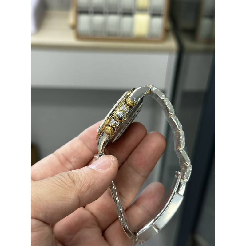 【BT Factory2024墙裂推荐】市场最高版本 劳力Rolex迪通拿腕表!型号:116500 尺寸:40mm×12.2mm 功能:时、分、秒、计时显示 机芯:4130 动力储存:72小时 镜面:蓝宝石 字面:白面,黑面 材质:904L精钢 表带:AR厂钢带 圈口:陶瓷圈镀铂金膜 夜光:瑞士夜光涂料 防水:100米 重量:148克 BT Factory出品,劳力士迪通拿九大亮点: 1BT厂迪通拿4130机芯腕表厚度12.2mm,市场其它版本7750假夹板机芯,通过压低针杆,改薄机芯厚度。稳定性极差,不能做到和正品一致。 2采用4130机芯(原N丹东厂),背后夹板采用雕刻和电镀字体更加光亮。 3钢带采用原AR厂。其次,表扣再次升级比例尺寸。 4表壳采用N工厂对照2022最新版加工,更新底盖抛光亮面尺寸和牙边的弧度。 5表针采用Buff工厂再度升级,三枚小秒针和大秒针,均按照单支定做且实心针套,针帽呈现蘑菇圆头状。 6陶瓷圈Cerachrom再升级镀铂金膜字保持不变色,且更新字体粗细。 7字面对照2022最新版白面,采用瑞士油墨加韩国陶瓷调制打磨做到有厚质感纯乳白色与原版无色差。告别市场之前发黑的“死白”色。 8刻度字钉每粒独立CNC雕刻而成,每粒手工打磨边缘。夜光采用瑞士夜光粉与正品无色差。最终效果是市场最接近原版发光视觉。 9玻璃采用全通透蓝宝石,无边缘视觉。目前,市场的玻璃边缘呈现偏圆弧肥厚的视觉。只有BT厂的细节做工与正品一致。 BT Factory2024匠心力作 欢迎各位表友品鉴!
