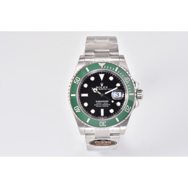 clean厂/C厂 劳力士126710 submariner水鬼 1:搭载一比一超级3235一体机芯 无卡度机芯装饰 机芯及其稳定 2:整表904L精钢 /搭配ar厂钢带 3:表盘使用市场独家"锅盖字面" 无面脚设计 ps:有面脚的成本低很多 4:全市场唯一日历字体对版 后续1-31号挨个字体真假对比 5:唯一做到指针夜光/字钉夜光 做到同色 因为都是第三方工厂加工+自购瑞士 c1+c3夜光粉 6:字钉ip白金电镀 7:陶瓷绿圈使用独家clean绿圈v4版本 颜色无限接近原装 clean陶瓷类配件 无需赘述 高品质象征 /谨防假clean圈 注意区分 8:温润如玉夜光珠 不死白 clean陶瓷圈+夜光珠完美复刻 虽然clean的款式不多 但是几乎款款均为精品 彻底解决世面上的大部分水鬼痛点,只为极致而生 clean-submariner