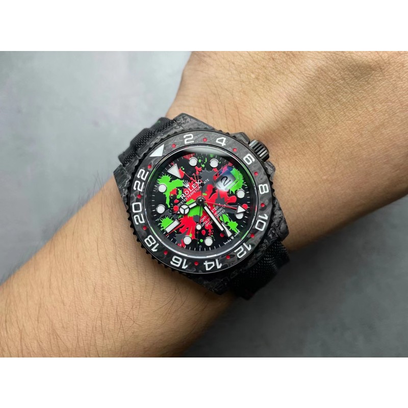 VS新品Ntpt格林尼治,碳纤维表壳佩戴轻便,外表坚硬,每一只腕表都拥有独一无二的碳纤花纹,纹路碳花超越市场所有副本,尺寸40X12.4吻合原装,3186机芯。