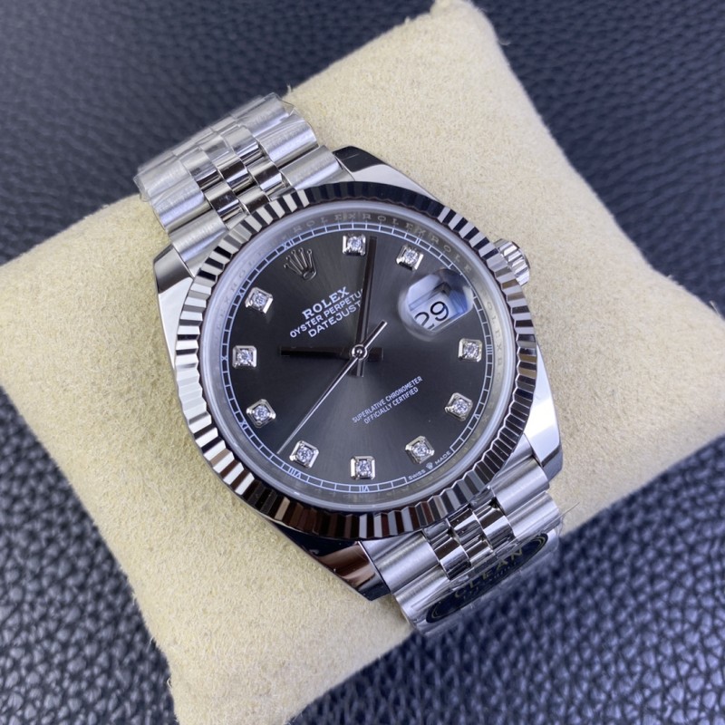 Clean厂 C厂 劳力士日志型系列41mm 1:搭载一比一超级3235一体机芯 动力72小时 无卡度机芯装饰 机芯及其稳定 2:整表904L精钢 /搭配ar厂钢带 以及ip真空电镀铂金牙圈 /掉色免费更换 3:表盘灰色无限接近原装 4:全市场唯一日历字体对版 后续1-31号挨个字体真假对比 5:唯一做到指针夜光/字钉夜光 做到同色 因为都是第三方工厂加工+自购瑞士 c1+c3夜光粉 6:字钉/皇冠唛头钉 全白金电镀处理 虽然clean的款式不多 但是几乎款款均为精品 彻底解决世面上的大部分日志痛点,只为极致而生 clean-datejust