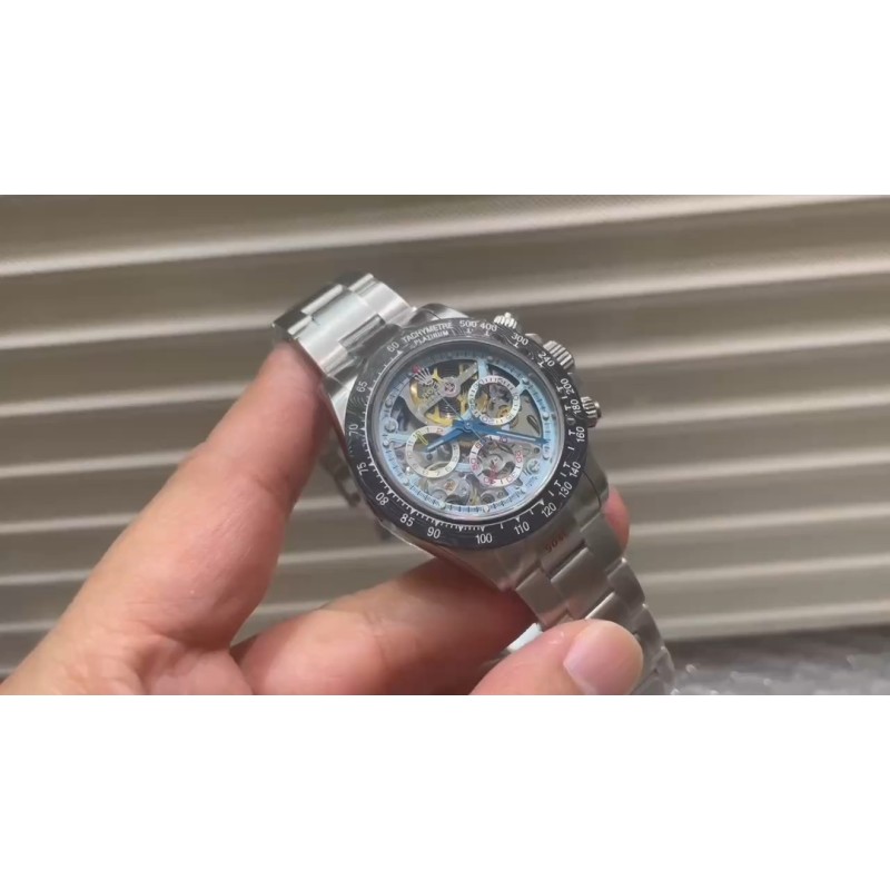 Sonic再次新作:世界首款镂空表盘劳力士迪通拿腕表, 专为一级方程式冠军打造 1:机芯采用丹东原4130机, 花重金复刻来自瑞士劳力士定制商Artisans de Genève团队的缕空机芯,每个拆件都以非常高的精度逐一拆装,进行缕空和手工制作切角,让缕空、主板,桥梁甚至主发条盒完全展开,大多数部件经过涂层、斜切以及抛光等精湛工艺,全缕空展现出来、赏心悦目! 2:表圈采用定制表圈,为锻造碳材料一体加工成型、坚硬耐磨! 3:外壳、钢带等采用904L,上下采用蓝宝石水晶玻璃镜面! Soinc改造团队用真诚打造、把4130缕空机芯用最好工艺进行升级,让其缕空机芯更加精润、漂亮,我们还是继续承载了所有力量、创造奇迹、在未来道路无坚不推,勇往直前的意志力!