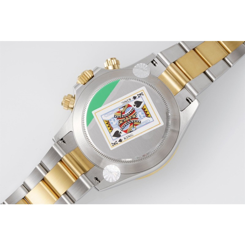 KING ROLEX DAYTONA 4130版本 出道即巅峰!无须再升级! 超级精品!欢迎品鉴! 超级大厂 瑞士A级品质 ! 真正原装1比1壳套打磨抛光! 尺寸:40mm*12.2mm 采用最好的代用级别表盘和夜光指针 搭载最强丹东4130机芯! 机芯夹板雕刻字体升级!圈口升级! 秒杀市场其它版本! AR精品全904L表带,不惜成本重金打造间金,全金,全玫瑰金款,采用包金式的18K金电镀工艺,是目前国内最好的单件散电!不透白,不掉色!成本极高,产量不多! KING 劳力士 迪通拿 以超绝的品质 满满的诚意 值得您拥有