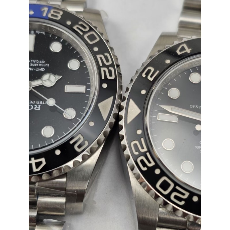 clean厂 c厂 126710格林尼治 陶瓷圈字体细节对比,12点位三角部分,顶角,以及
