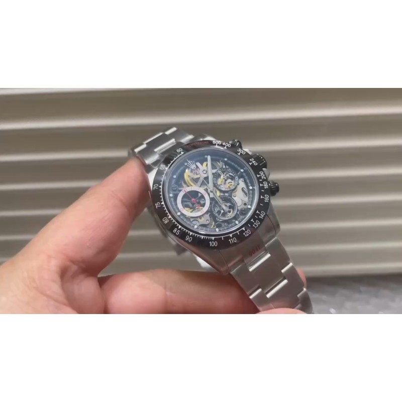 Sonic再次新作:世界首款镂空表盘劳力士迪通拿腕表, 专为一级方程式冠军打造 1:机芯采用丹东原4130机, 花重金复刻来自瑞士劳力士定制商Artisans de Genève团队的缕空机芯,每个拆件都以非常高的精度逐一拆装,进行缕空和手工制作切角,让缕空、主板,桥梁甚至主发条盒完全展开,大多数部件经过涂层、斜切以及抛光等精湛工艺,全缕空展现出来、赏心悦目! 2:表圈采用定制表圈,为锻造碳材料一体加工成型、坚硬耐磨! 3:外壳、钢带等采用904L,上下采用蓝宝石水晶玻璃镜面! Soinc改造团队用真诚打造、把4130缕空机芯用最好工艺进行升级,让其缕空机芯更加精润、漂亮,我们还是继续承载了所有力量、创造奇迹、在未来道路无坚不推,勇往直前的意志力!