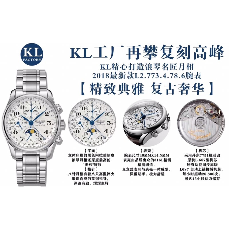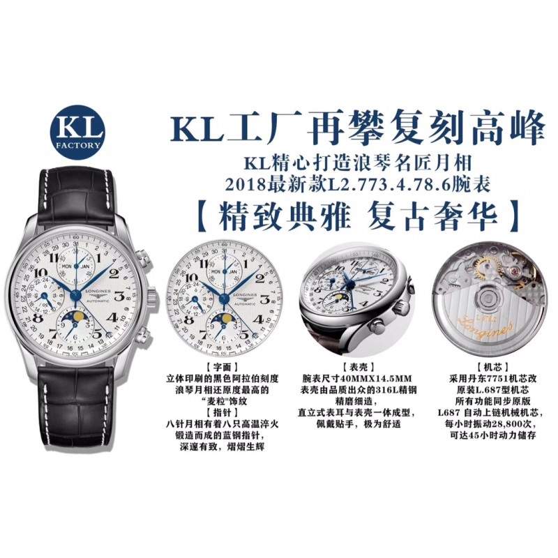 KL工厂再攀复刻高峰【精致典雅 复古奢华】KL精心打造浪琴名匠月相2018最新款L2.773.4.7