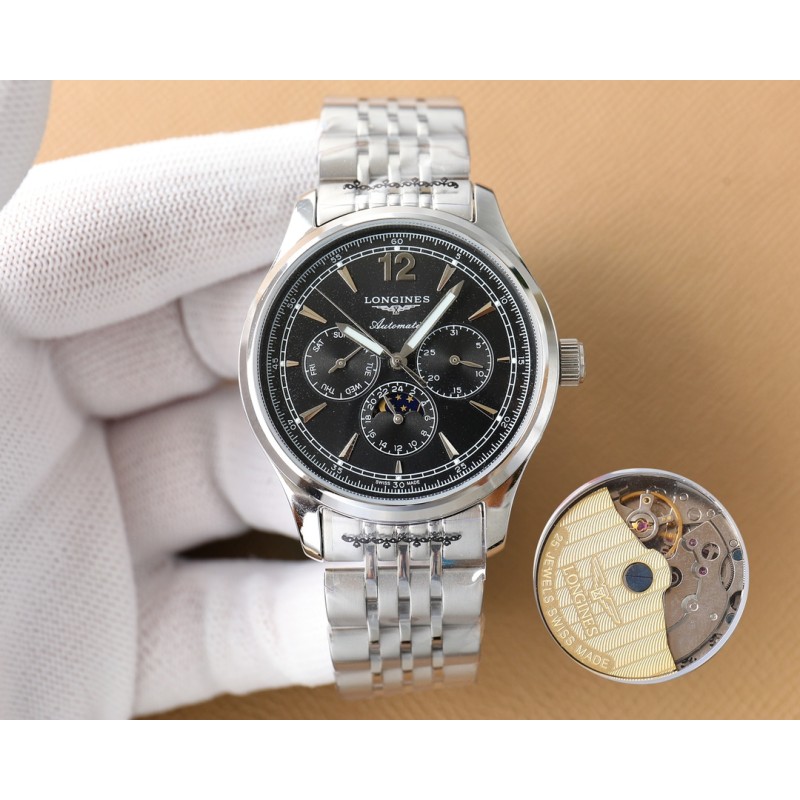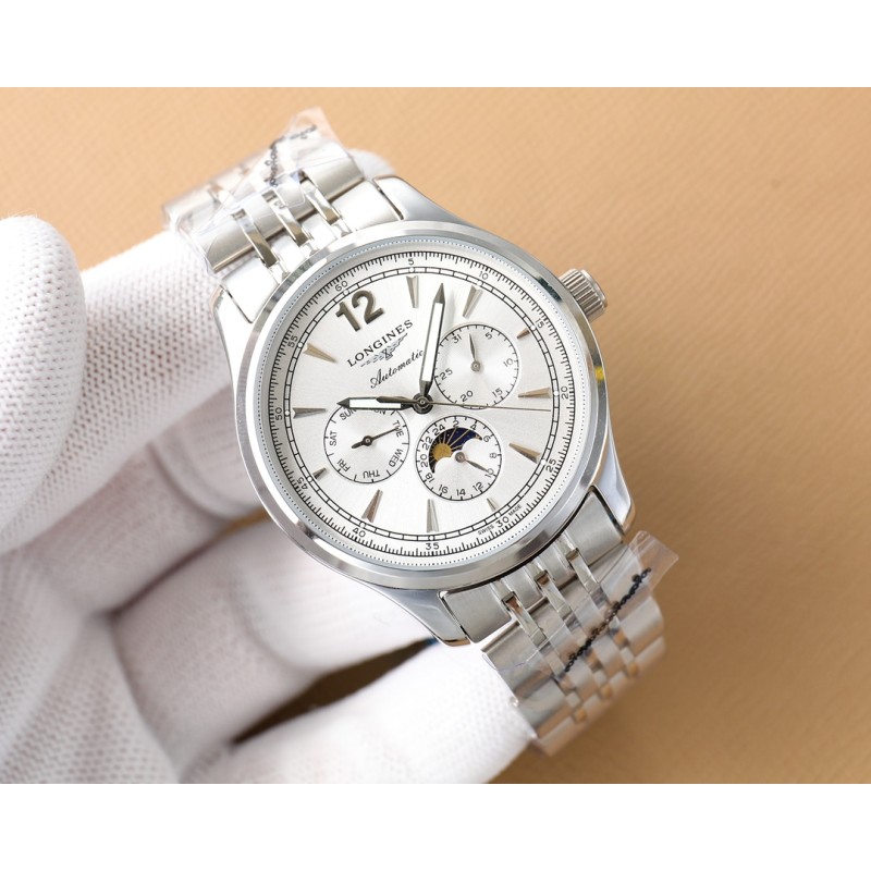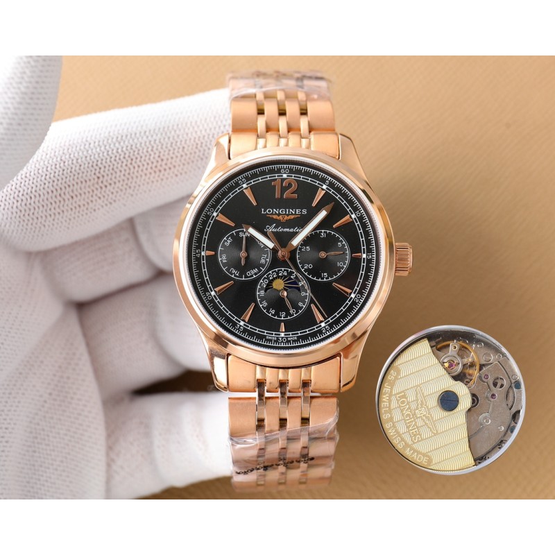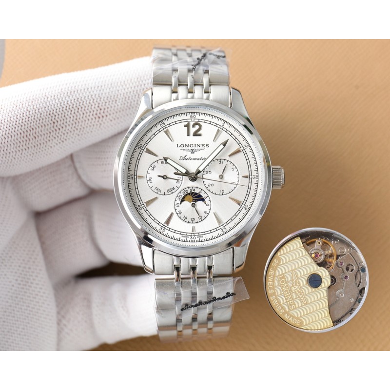 白壳520,玫瑰金540,钢带+20。 新款伊索米亚,多功能月相 3点6点9点位置分别设有星期 日期 24小时月相功能 采用3836机芯(稳定 走时精准) 壳侧身更是采用了拉丝工艺 让整体更加精致 耐用【全新升级 经典百搭】浪琴-Longines 男士腕表 全自动机械机芯 矿物强化玻璃 316L精钢表壳 316L精钢表带 (表带更有拉丝工艺) 时尚设计 商务休闲 尺寸:直径40mm 厚度12mm 卓越出品 必是精品