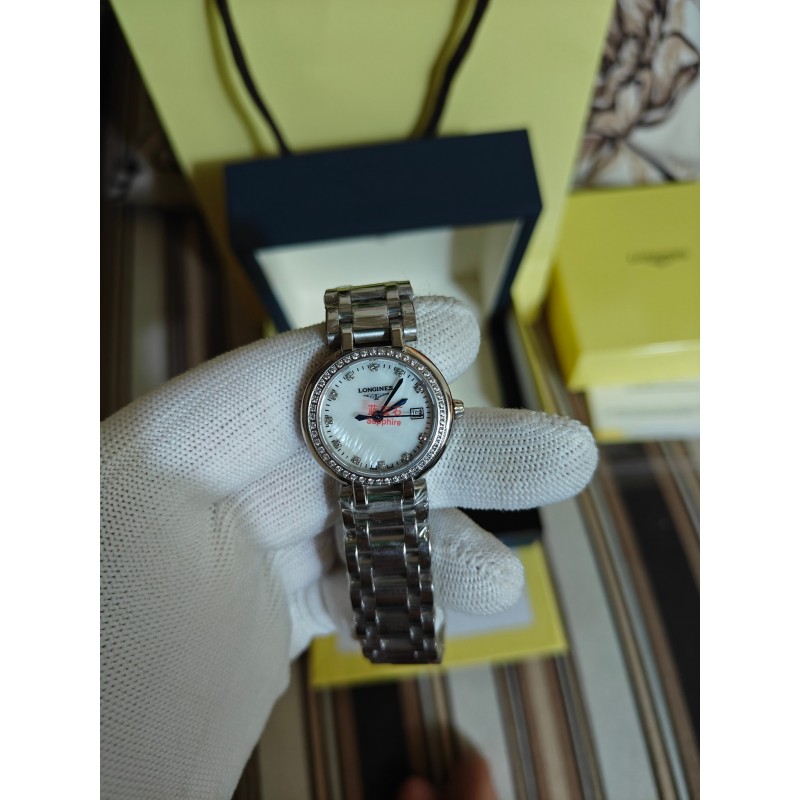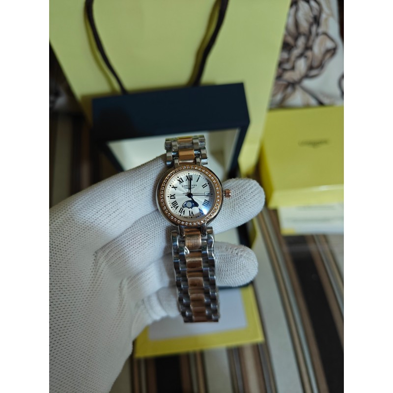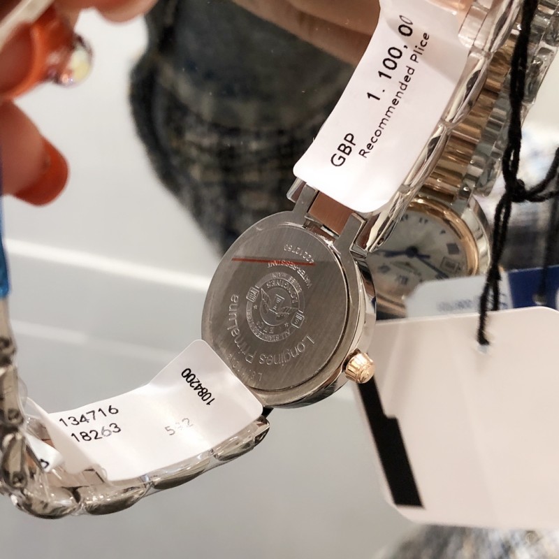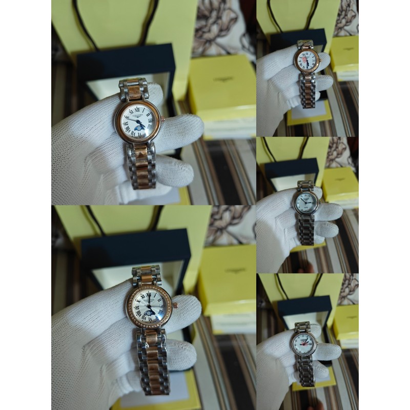 200 经典佳作H出品 跨界之颠——浪琴心月系列优雅而至 【机芯】采用原装瑞士775石英机芯 走时精准 用时耐久 免除了部分女士们不喜欢上链的需求 温柔的外表之下,蕴含一颗“正品”真芯。 【表壳】316L精钢国内顶尖制造工艺 一比一还原正品细节 腕表尺寸26.5mmX7mm,圆润的曲线式设计使得壳体别致精巧,底盖标志性的飞翼沙漏图案以及编号都完美无瑕的对比正品,每一枚表壳均是H对复刻腕表的精神表现,更是回馈用户的需求所致 【钢带】波浪型的表带动感贴手,光泽流盼。每一粒表链都经过H制表师精心细致的打磨,确保光泽和形状完美无瑕,吻合原版