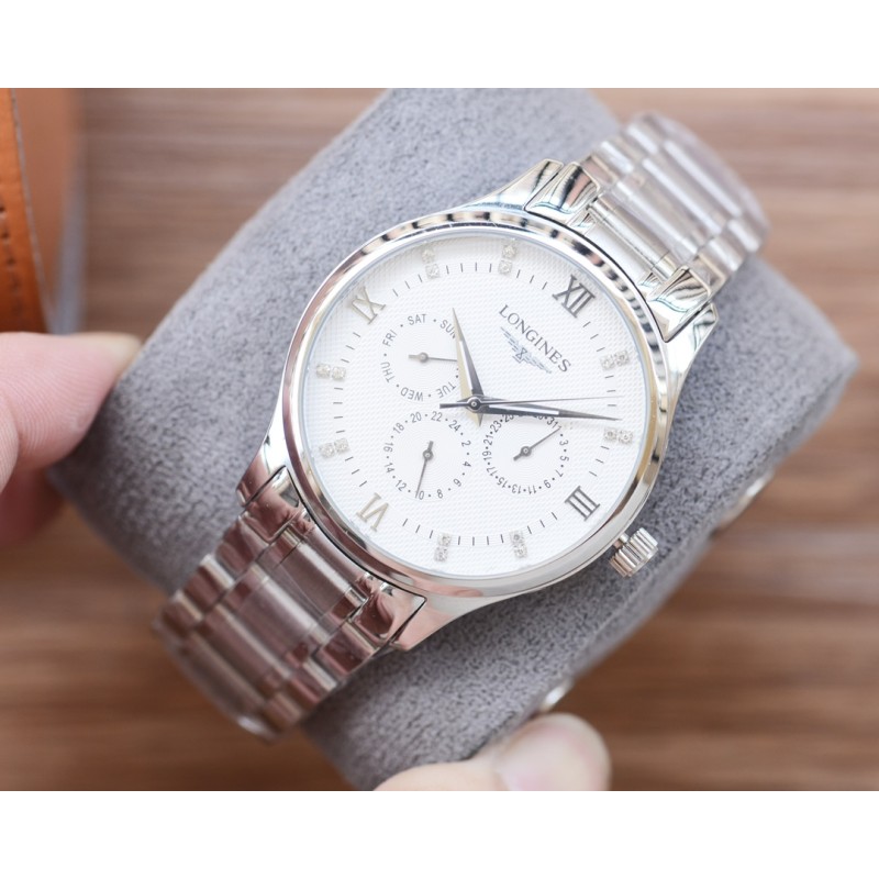 白470,金490,钢带20 男人挚爱 三针腕表 【最新】:浪琴最佳设计独家首发 【类型】:精品男士腕表 【表带】:真牛皮/316表带 【机芯】:全自动机械机芯 【镜面】:矿物质强化玻璃(更高清) 品味高雅 浩瀚大气 匠心独运 腕间瑰宝 尺寸:直径41mm厚12mm热卖上市!欢迎转载!