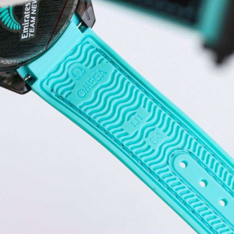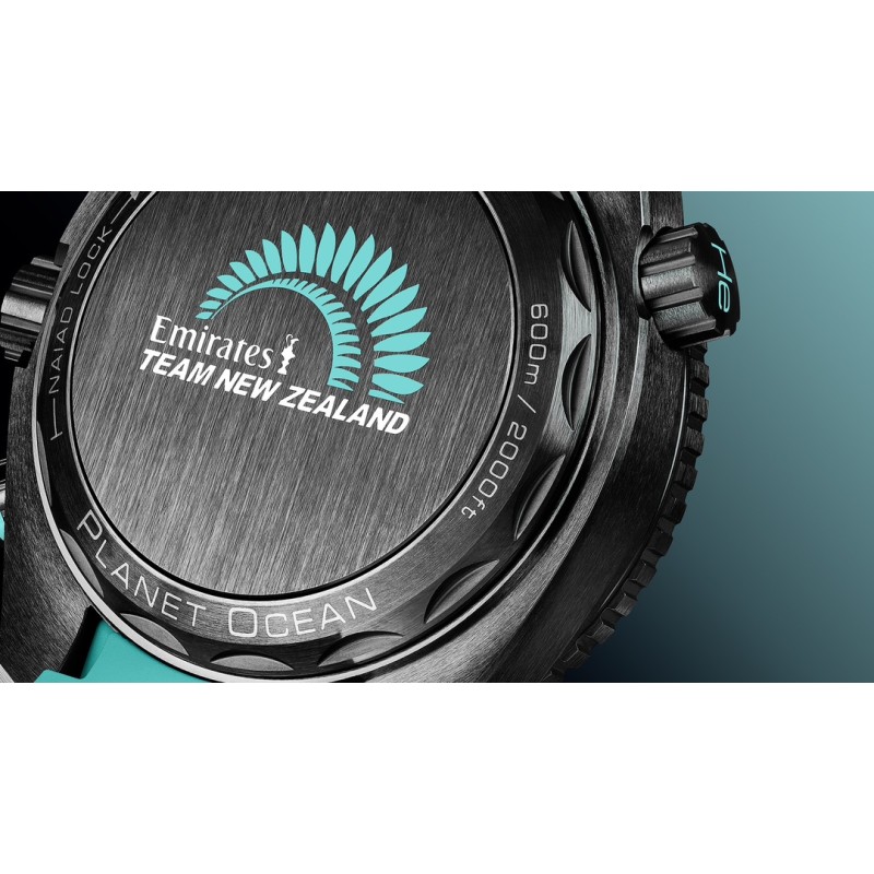 SJ出品 1650 无俱风浪 做您踏实的领航者 欧米茄 OMEGA 全新海系马列600m HO1 海洋宇宙计时士男腕表 市面目前高最版本的计时腕表 45.5mm表壳采用轻盈又耐磨的黑色材料打造,存在感十分强烈。潜水表圈采用白色珐琅刻度,侧面2个计时按钮分别装饰绿松石色带。搭载 OMEGA 9900 自动上链机芯,动力储备60小时。这枚机芯经过 METAS 至臻天文台认证,能够抵御15000高斯磁场影响。翻转至表底可以看到新西兰酋长队的标志。S1精致推荐男士多功能机械腕表