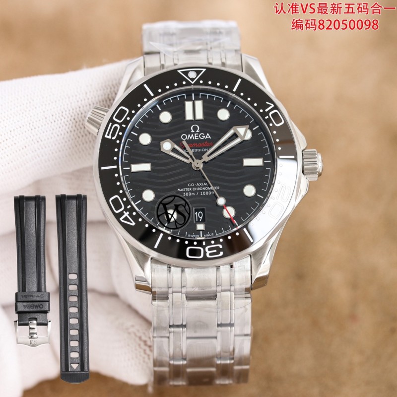 白壳1250 金壳1300 (一套送表带) 最新,最靓,最A,欧米茄 OMEGA 海马系列 PQ1 海马300五码合一搭配VS独特包装白胶盒,墙裂推荐,最高性价比,机芯搭载8800黑摆轮一体机,媲美原装,大厂品质,欧米茄海马系列开启复刻传奇的篇章。这一前沿风尚的海马300米系列腕表,采用进口316L精钢打造而成,表圈采用韩国高密度陶瓷,饰以白色珐琅潜水刻度。表盘亦以抛光陶瓷制成,饰以激光镌刻波纹图案。42mm表壳拉丝细腻。钢带逐粒手工打磨,市面首家做到同原装一致钢带背面有倒角并且可以与原装互换,氟橡胶表带手感顺滑厚重,生耳可与钢带通用。蓝宝石玻璃表镜采用维尔纳法(又称焰熔法)生产。其莫氏硬度等级为9级,同时确保在任何时候都具有卓越的通透性。 搭载独家研发定制复刻8800一体机芯(黑摆轮双T避震器),经数月测试,质量稳定。 历经坎坷,制成不易,谨献爱表人。认准机芯编码82050098独家品质,值得拥有!