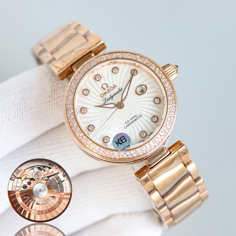 白钢1300 金1350(带钻加50) 精品 V4版 欧米茄 碟飞LADYMATIC鸟巢系列女士机械腕表,妮可基德曼代言 搭载Cal.8520/8521同轴自动机械机芯 前后蓝宝石镜面,彩色珍珠贝母表盘,原版1:1开模 ,市场唯一一家跟足原装结构散件拼装,尺寸34mm*12mm,请认准细节