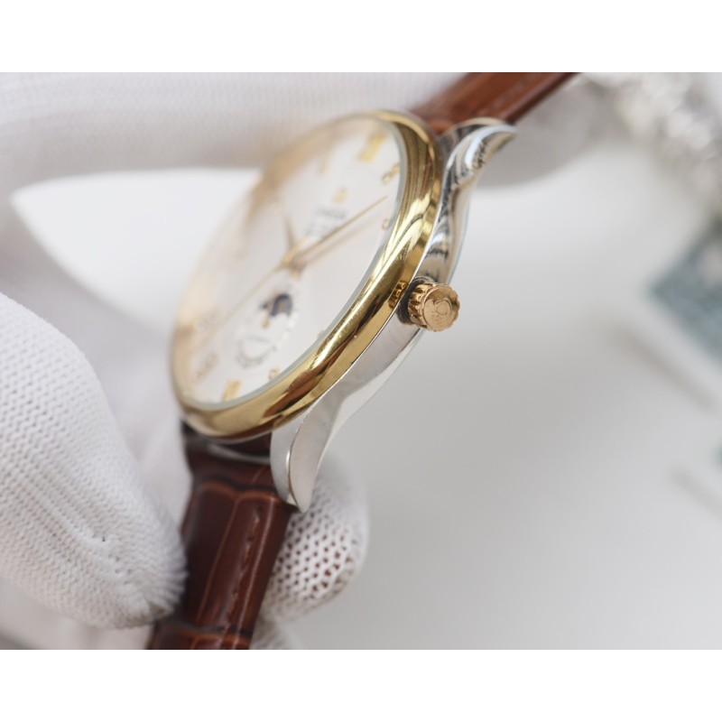 白壳440,金壳460,钢带20 品牌:欧米茄-OMEGA 类型:男士腕表 壳套:顶级版316精钢L 表带:进口小牛皮表带/316L精钢表带 机芯:全自动机械机芯 镜面:矿物质防刮镜面玻璃 尺寸:直径41mm厚11mm 精致传承真实效果,品质保证! 优雅格调瞬间提摄男士魅力,更是品位与生活尊贵象征!