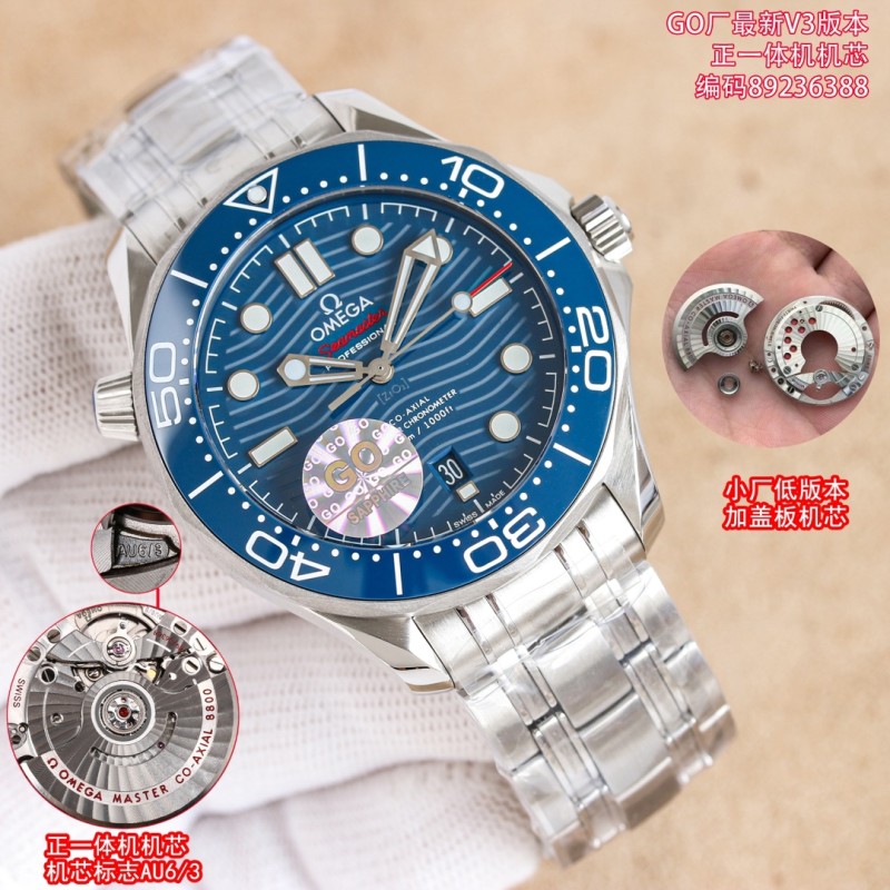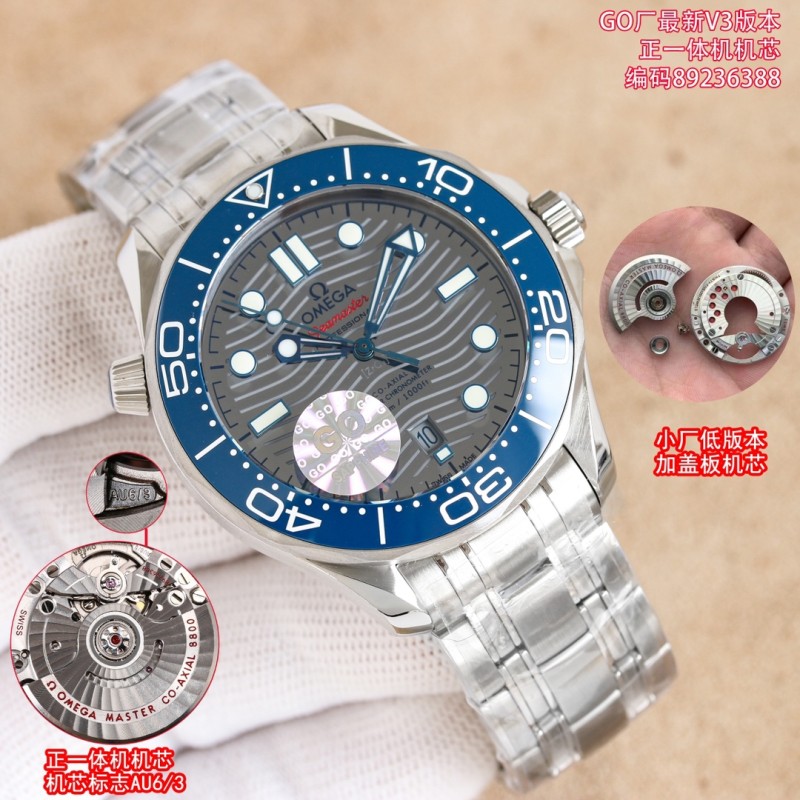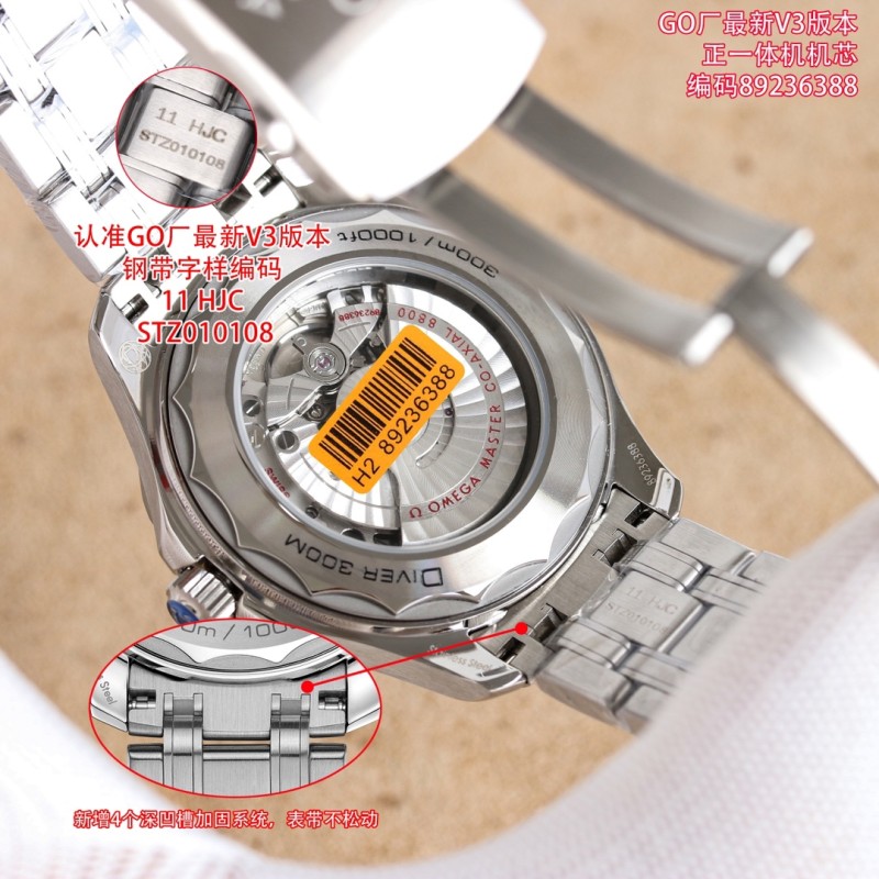 统一1350 老字号,品质保证,亲民价格,GO厂(原GF厂更改为GO厂),最新推出海马300,原版黑摆轮,最佳选择!高性价比,买海马300,就选GO厂V3一体机机心最新版本,欧米茄海马300多码合一搭配G0独特包装,腕表编码,89236388,墙裂推荐,最高性价比,机芯搭载真真正正的8800黑摆轮一体机,(非小厂低端版本,非一体机加盖板机芯,)机芯标志AU6/3,认准V3版本,对版标志,细节完美,媲美原装,大厂品质,欧米茄海马系列开启复刻传奇的篇章。这一前沿风尚的海马300米系列腕表,采用进口904L精钢打造而成,新增4个深凹槽加固系统,表带不松动,佩戴感受非常舒适,认准GO厂最新V3版本表带字样编码,11 HJC STZ010108,表圈采用韩国高密度陶瓷,饰以白色珐琅潜水刻度。表盘亦以抛光陶瓷制成,饰以激光镌刻波纹图案。42mm表壳拉丝细腻。 钢带逐粒手工打磨,市面首家做到同原装一致钢带背面有倒角并且可以与原装互换,氟橡胶表带手感顺滑厚重,生耳可与钢带通用。 蓝宝石玻璃表镜采用维尔纳法(又称焰熔法)生产。其莫氏硬度等级为9级,同时确保在任何时候都具有卓越的通透性。 搭载独家研发定制复刻真真正正的8800一体机芯(黑摆轮双T避震器),机芯标志AU6/3,经数月测试,质量稳定。历经坎坷,制成不易,谨献爱表人。 认准老字号GO厂腕表编码89236388独家品质,值得拥有!