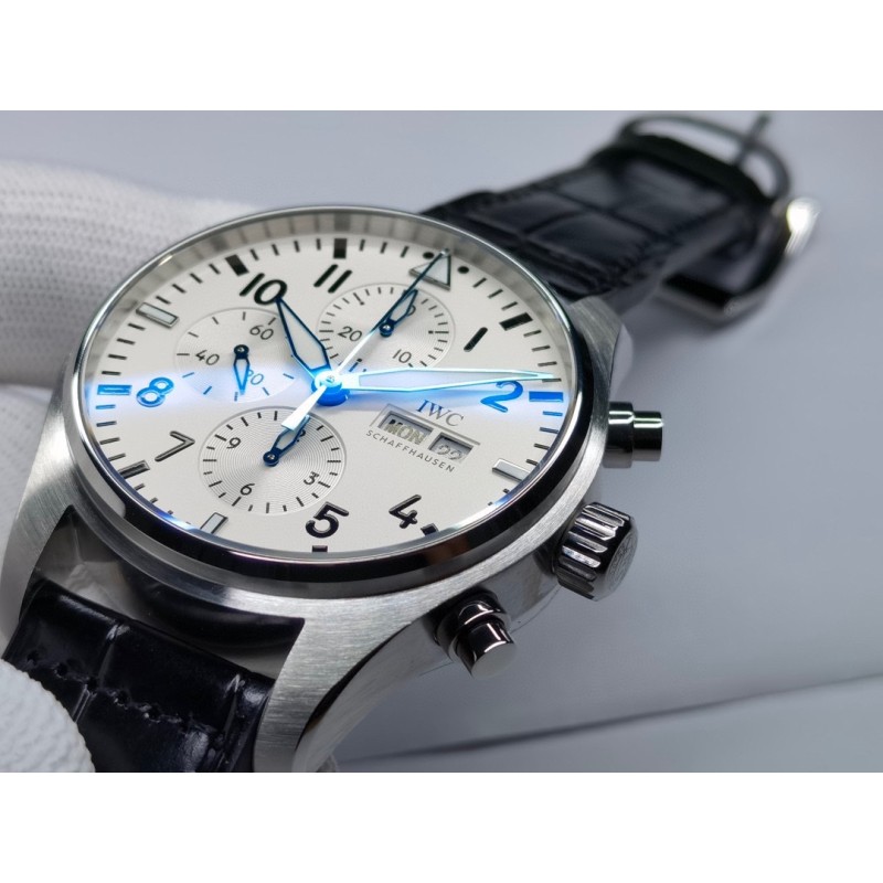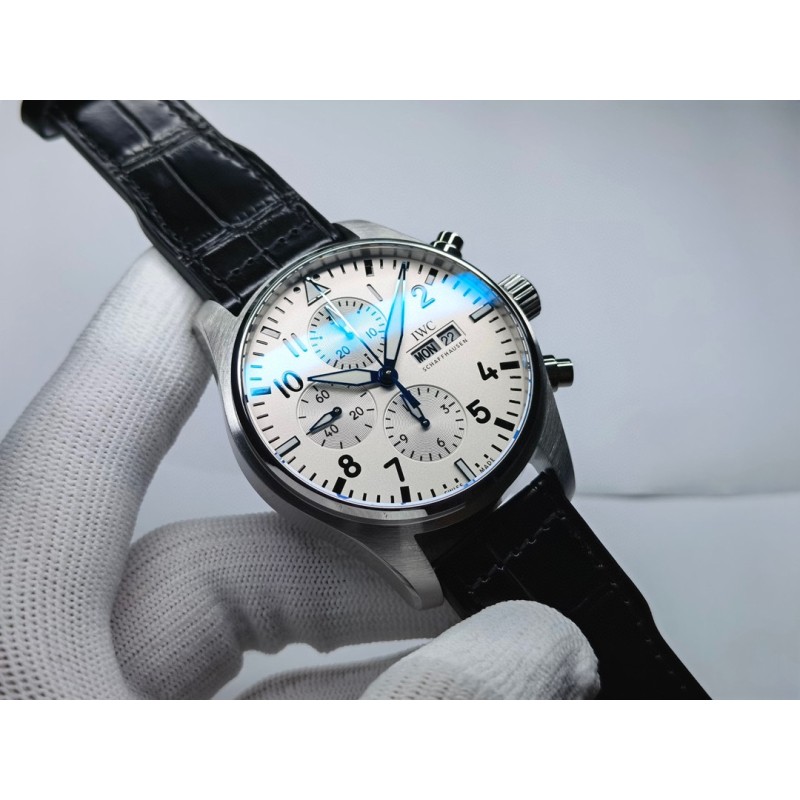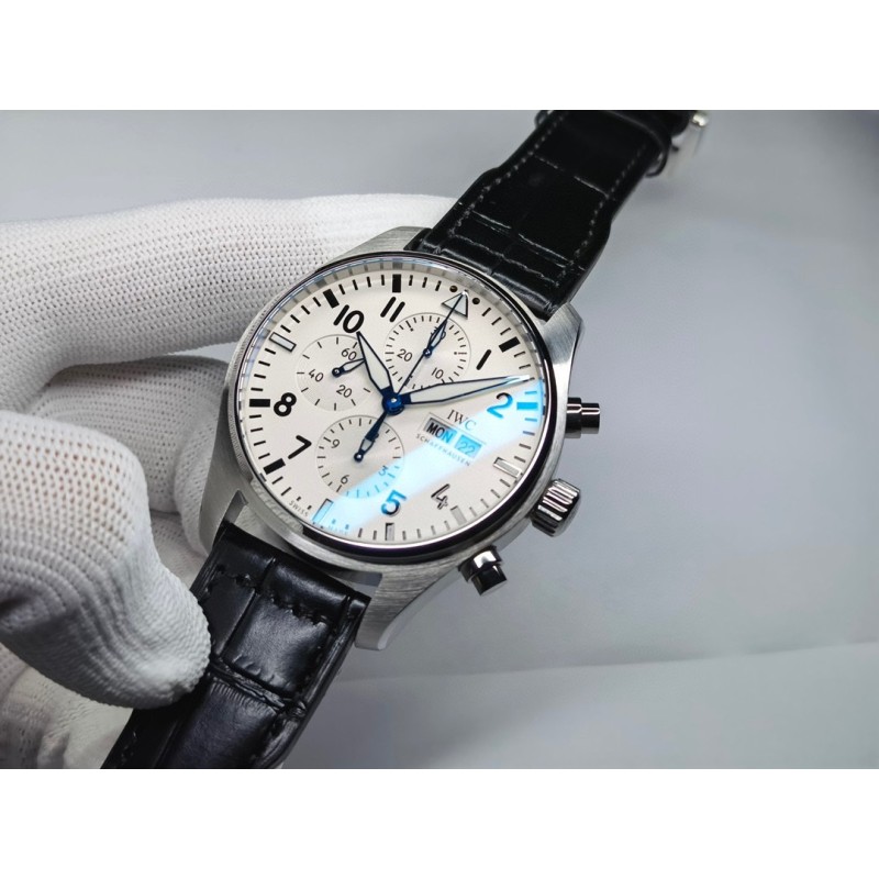ZF 出品 白壳1300 金壳1350 Z Factory 经典臻品升级V2版驰骋高空 分秒必“真”】万国 IWC3777飞行员计时系列,OR6 机芯同步原装,表针尾部微微弯曲,双面防眩晕蓝色镀膜。成就此非凡经典。【成熟做工】腕表尺寸43mmX15mm。表壳分为两件套,圈口和中壳为一体。难处在于中壳和圈口交接之处的直角转折打磨(需要大量的手工作业)。经过时光的淘洗,仿真度稳健,做工成熟。线条清晰而富有立体感。原汁原味的还原了该系列坚韧不拔的卓越品质。【机芯】采用TOP级上海7750机芯,不仅结构同步原装,上链,调历,操作指针和计时功能均和原装完全吻合。【精彩细节】1.ZF沿袭万国表的传统技艺,采用双层浅蓝色防眩晕镀膜。2.分针秒针的尾部微微弯曲,细节吻合正品送礼最佳奢华推荐请认准ZF独家品质