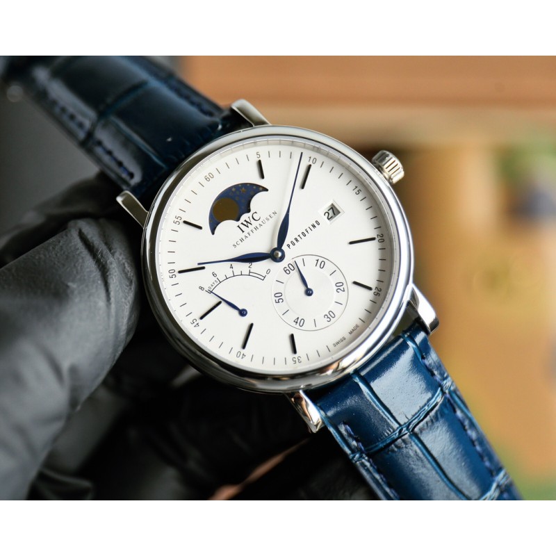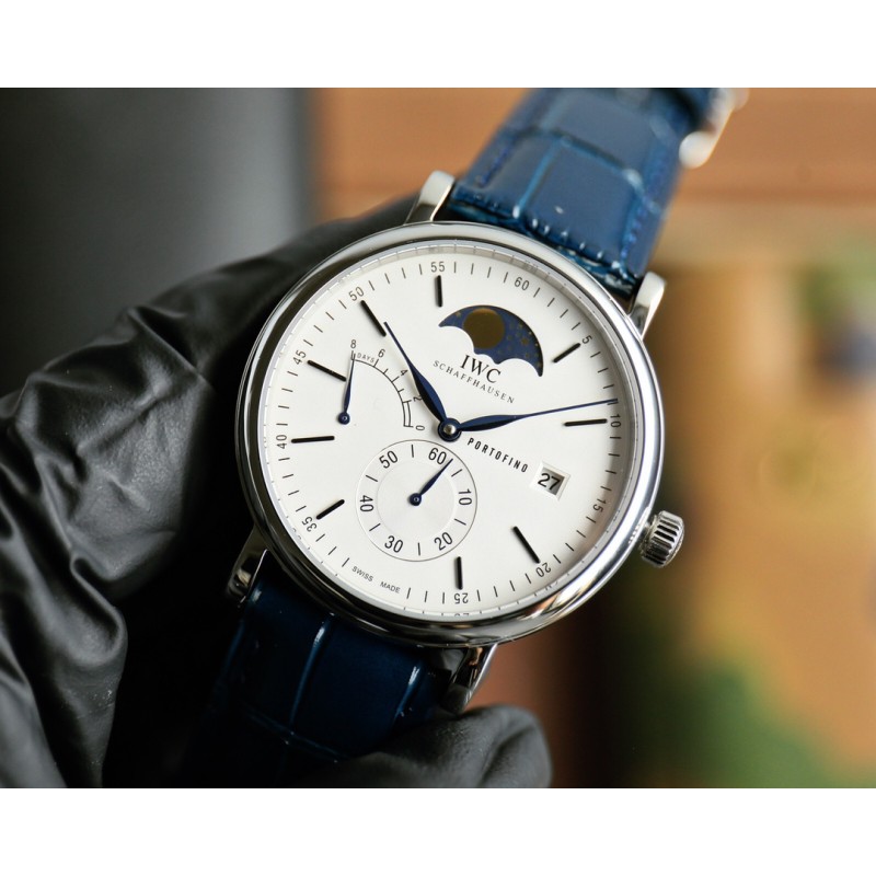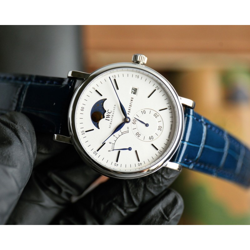 白壳1450 玫金1500 TWA新品 颜值巅峰 IWC旗下最耀眼的明星,万国长动能月相专家。 全新的柏涛菲诺系列IW516409透底腕表。 【表壳】316L精钢表壳,打磨抛光非常圆润。小秒针盘位于6点钟位置附拨针停秒功能,配有实心条钉刻度和罗马数字,9点位增添动能装饰,3点位写有PORTOFINO(柏涛菲诺英文)和准确距离日历窗,与弧形的动能装饰对称。12位配搭月相位置跟原版一致。我们可以注意到,这只手表的日历窗位于表盘最边缘,而且日历字体同原版一致。柳叶形指针分别指示小时和分钟,双面防反光拱形蓝宝石镀膜镜面 【表带】意大利小牛皮 【机芯】自主研制自动上链机械机芯,机芯稳定,走时准。 IWC旗下最耀眼的透底腕表。适合各种商务场合,简敛精致不失优雅!欢迎各路表友品鉴!