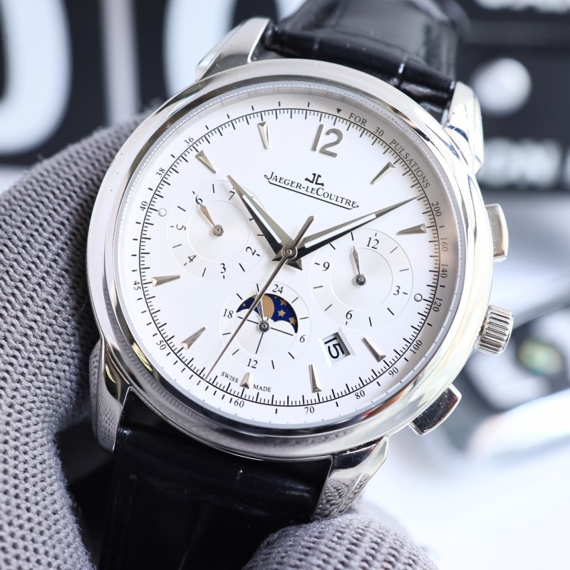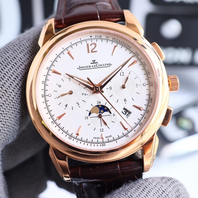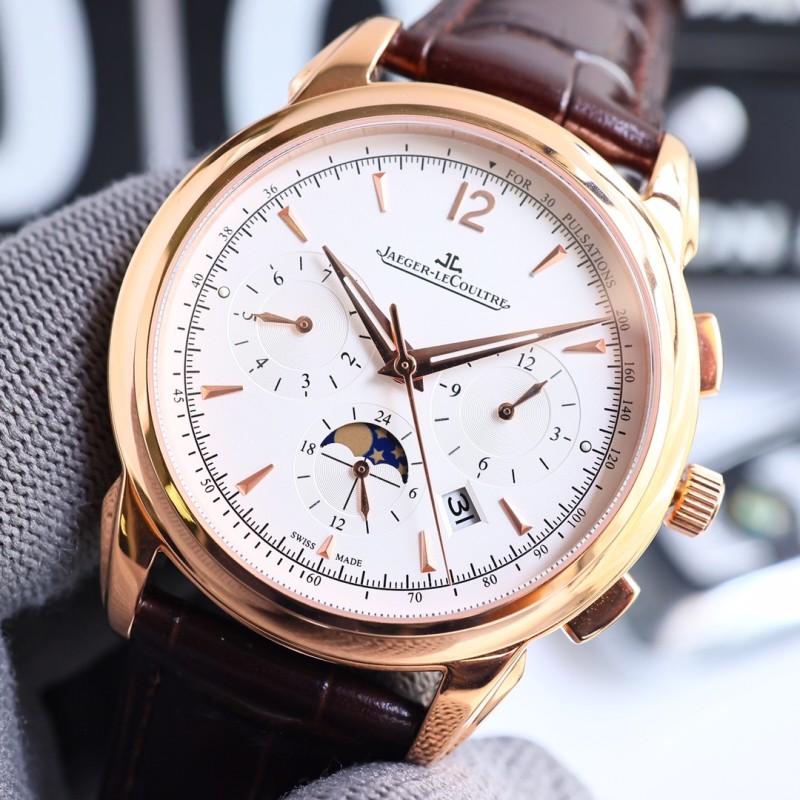 Jaeger-lecoultre(积家) 推出 积家大师1538420系列腕表,Factory 聘请制表师傅通过两年无数次测试,期间损坏机芯上百个,从星期,月相,到日历,月份,一一还原正品制表特质,以稍作不同的方式展现其隽永魅力! 推出新品 积家日历大师1538420系列,42mm让手腕更舒适,腕表9点位置小表盘显示星期、3点位置小表盘显示月份,腕表在6点钟位置的副表盘可读取月相24小时显示,边缘位置则显示时钟!腕表前后均采用蓝宝石水晶玻璃,皮带采用进口意大利牛皮,表扣则与表壳同材质的原装折叠扣,机芯则搭载进口9100多功能自动上链机芯,最大能量度还原正品! 腕表工厂让你以低的价格!买到百分之95的正品!千言万语都抵不过“喜欢”二字,只要喜欢,那就是值得!