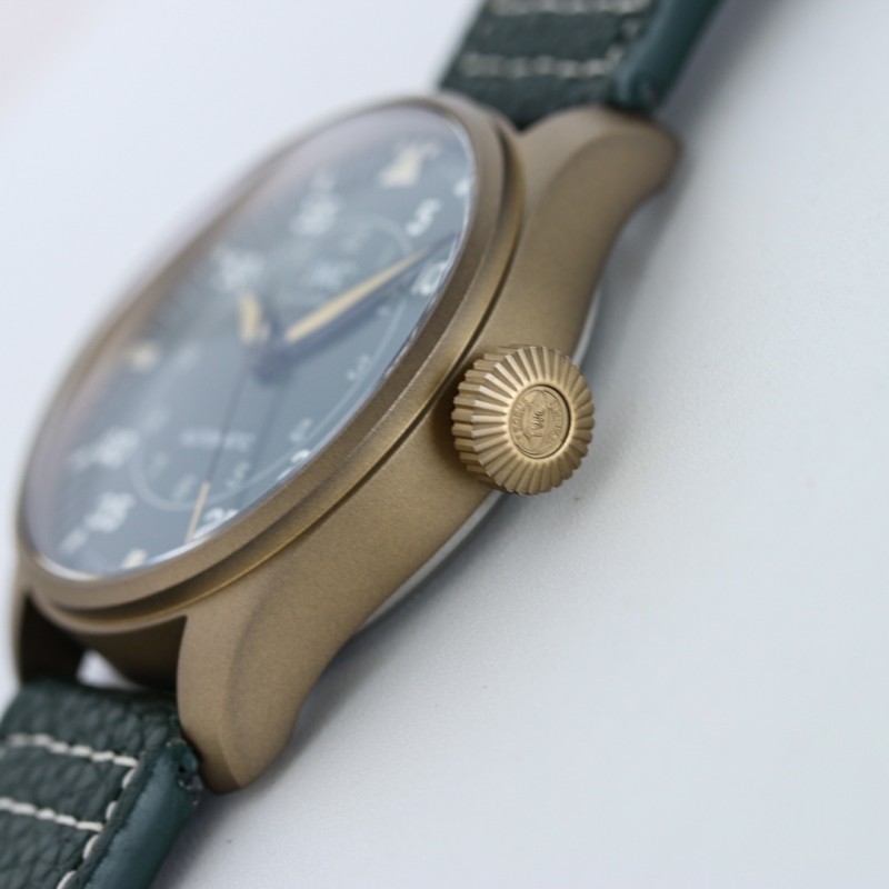 白钛1300 青铜1400 IWC 万国 空中霸主 IL1 大飞(大飞行员)系列。43mm 狂野阳刚的设计,霸气侧漏。细腻温柔的工艺,炉火纯青。两者相辅---刚柔并济,虎啸猿啼。【表壳】采用青铜壳跟钛壳,宽厚的表壳动感硬朗。每一只工件都经历制表师的层层把关,精雕细琢。搭配洋葱式大把头跟蓝宝石镀蓝光镜面玻璃, 原版钛合金底盖,表耳处微弧式的条线掌握的恰到火候,与原装同步。符合人体工程学,让佩戴者更加贴手舒适。【表盘】简约的设计,大气磅礴,超强瑞士夜光,功能同步原装无日历【机芯】2824雕花鱼鳞纹机芯 【表带】采用进口小牛皮表带搭配原装折叠按压扣。IWS出品,必属精品。S1精致推荐男士机械腕表