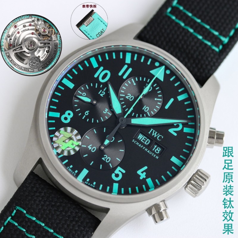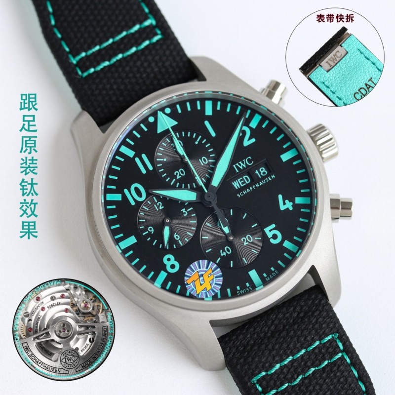 光刻 1800 喷钛砂 2000 ZF新品 IWC+AMG工程师强强联手 OR6 IWC万国飞行员新款IW388108 飞行员系列 1.腕表具有蓝绿黑精钢和马石油喷砂哑光技术处理呈现钛效果,做工成熟,线条清晰而富有立体感,颜色搭配和谐,非常百搭。 2.和小版本41尺寸的飞行员相比43尺寸,更加符合现代男表的黄金尺寸 3.表盘设计延续飞行员经典的驾驶舱仪表盘风格 马石油绿颜色搭配使腕表焕然一新 骚气十足 4.全新透底设计采用7750改自产69385型自动上链机械机芯,上满链后能为腕表提供46小时动力储存 5.双层浅蓝色防眩晕镀膜更能清楚的读时,延续的前作的经典外观,马石油绿也成为今年的大热门 绝对是最具万国气质的腕表 6.不惜成本原装开模 搭配专柜独家研发快拆皮带HE快拆编织皮带 ZF匠心巨作 欢迎品鉴!S1精致推荐男士多功能机械腕表