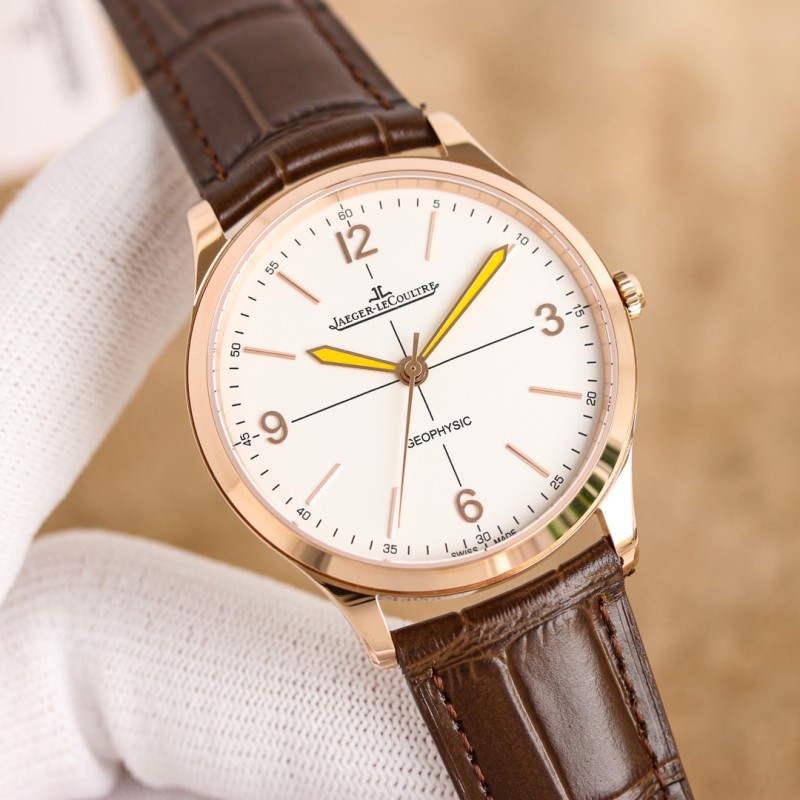 白壳1150 金壳1200 JL 积家 地球物理天文台系列 8006252j AIS 全新复刻系列 透底腕表 6 点及 12 点位置分别饰有「Geophysic」字样和积家标志 剑形指针 表经尺寸38.5 毫米(同步正品)采用进口9015自动上链机芯,走时精准,可靠性十足。表壳材质316L精钢,表镜前后采用蓝宝石水晶玻璃,意大利牛皮搭配原装扣,防水深度50米。 (美观而不失低调、极致精简而不失优雅)