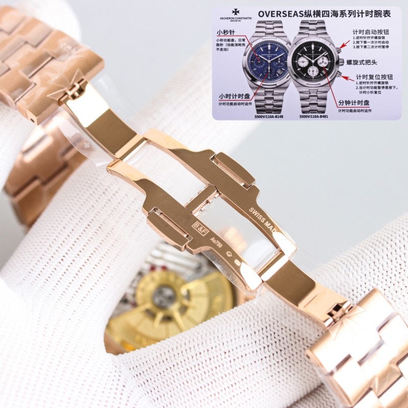 白壳1700 玫瑰金1800 江诗丹顿 Overseas 纵横四海腕表 升级版V3耗时12个月打造出来的精品 精钢表壳,直径 41mm,蓝宝石水晶表镜表背,7750改5200自动上链机械,摆频28800次/小时,精钢表扣,防水150米。最后一定要赞赏的是全新的「可更换表带系统」,新 Overseas 只需要拨动表带和表耳之间的一个小划杆就可以拆换表带,每一枚都可选钢带、胶带,皮带,一表3带,真正做到1:1复刻