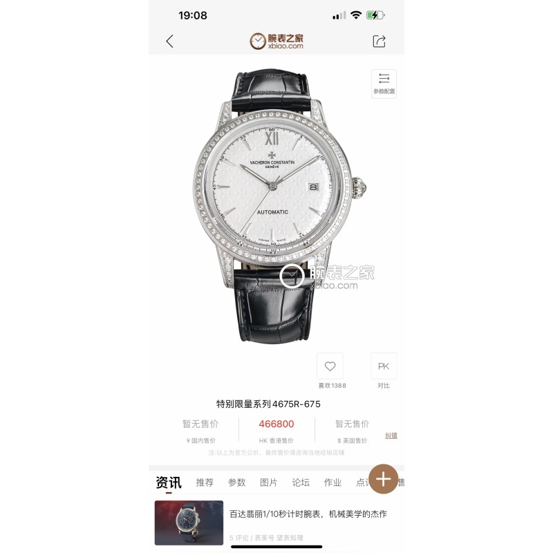 同价 P680 品牌:江诗丹顿传承系列30020/000P-7596腕表 主要参数 品牌:江诗丹顿
