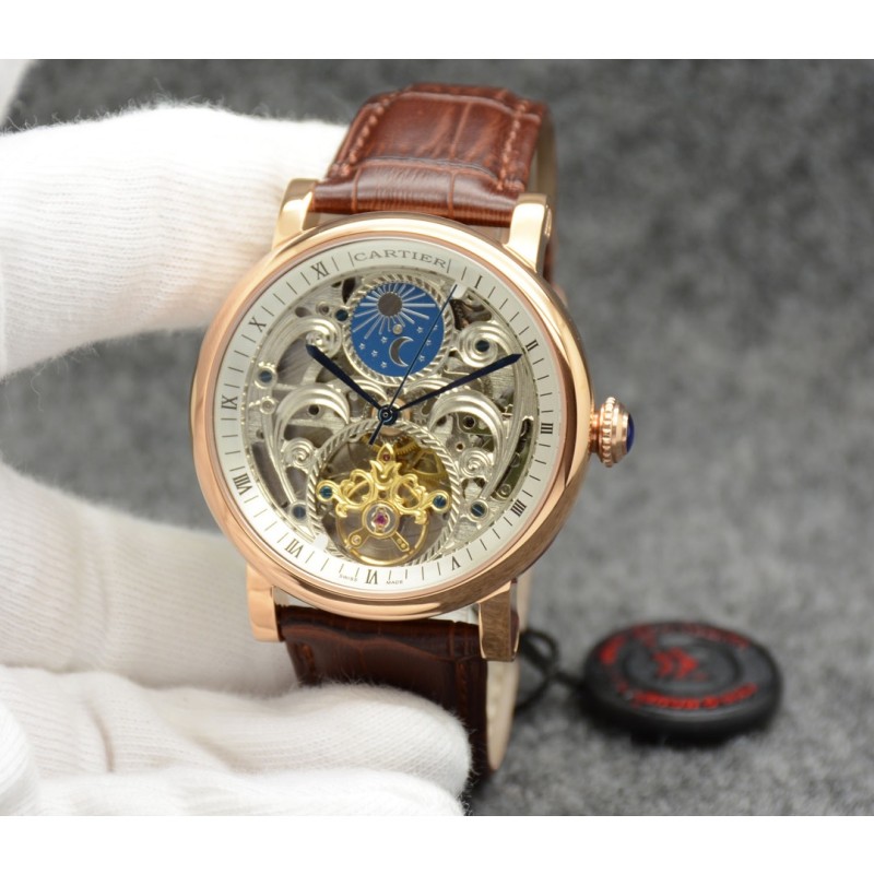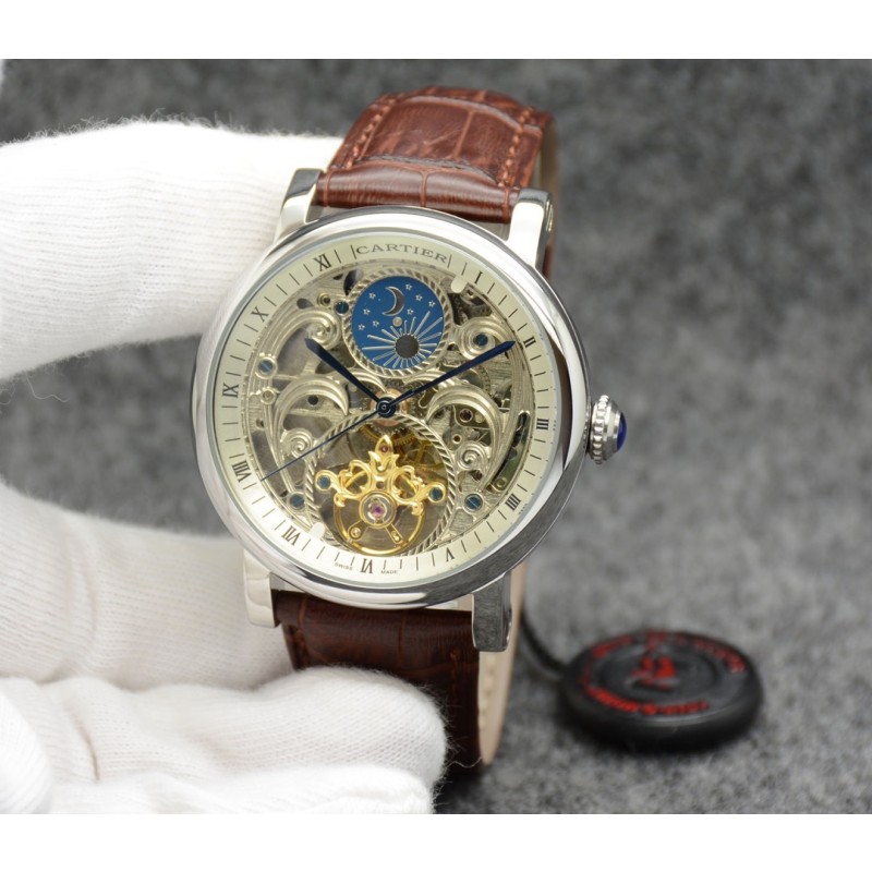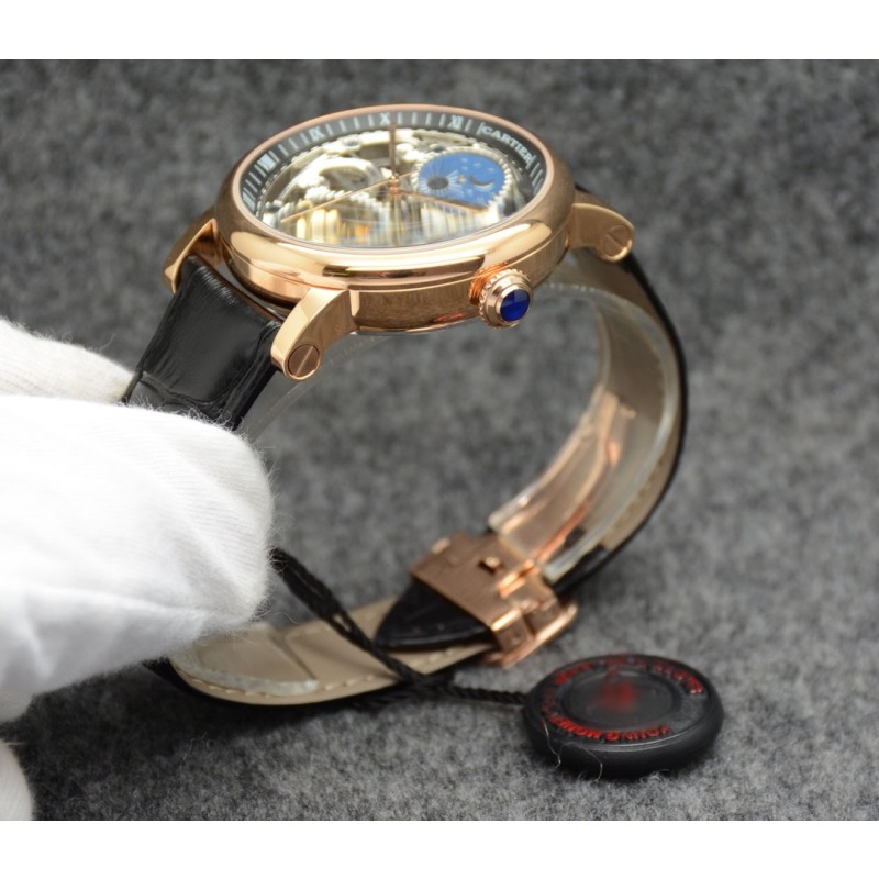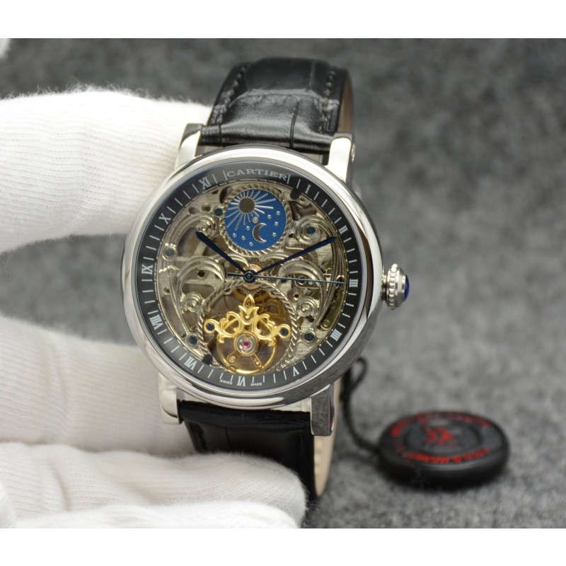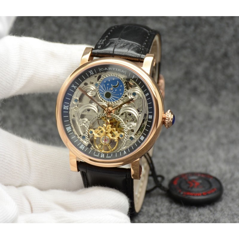 金白同价:皮带p600 钢带620。卡地亚-Cartier 精品男士腕表,劲爆镂空设计,尊贵大气,绅