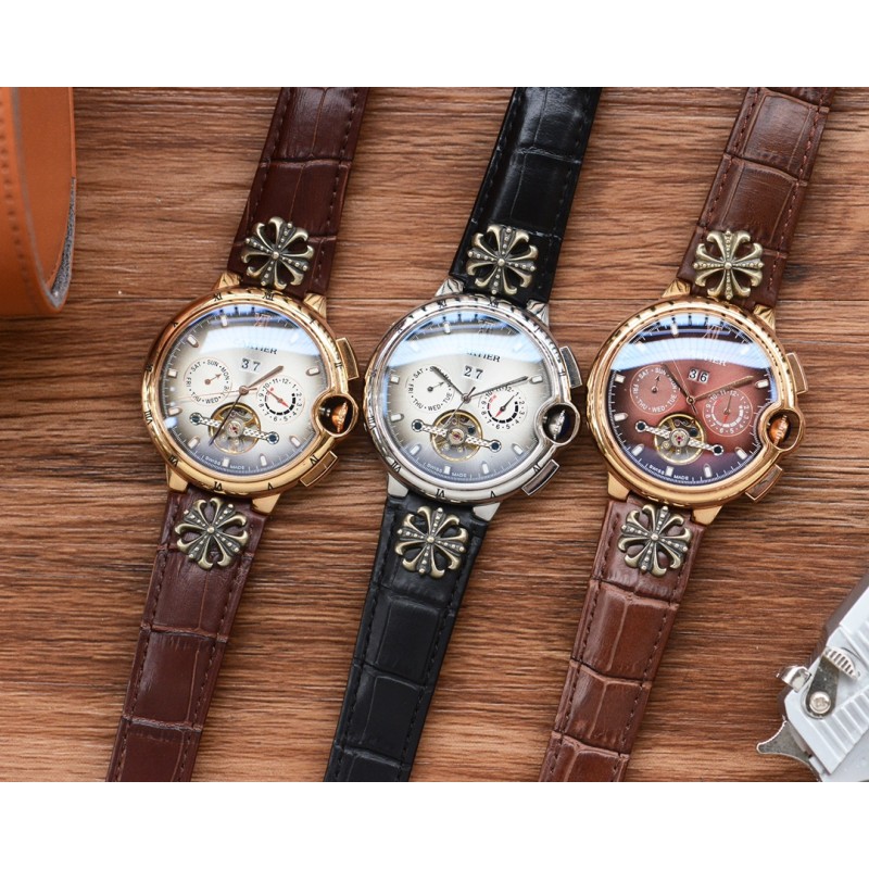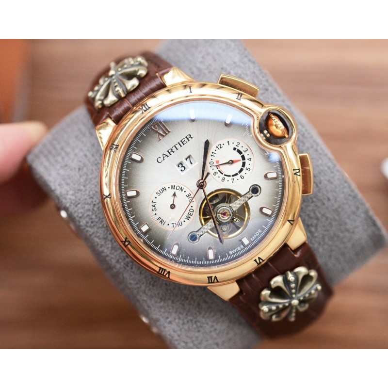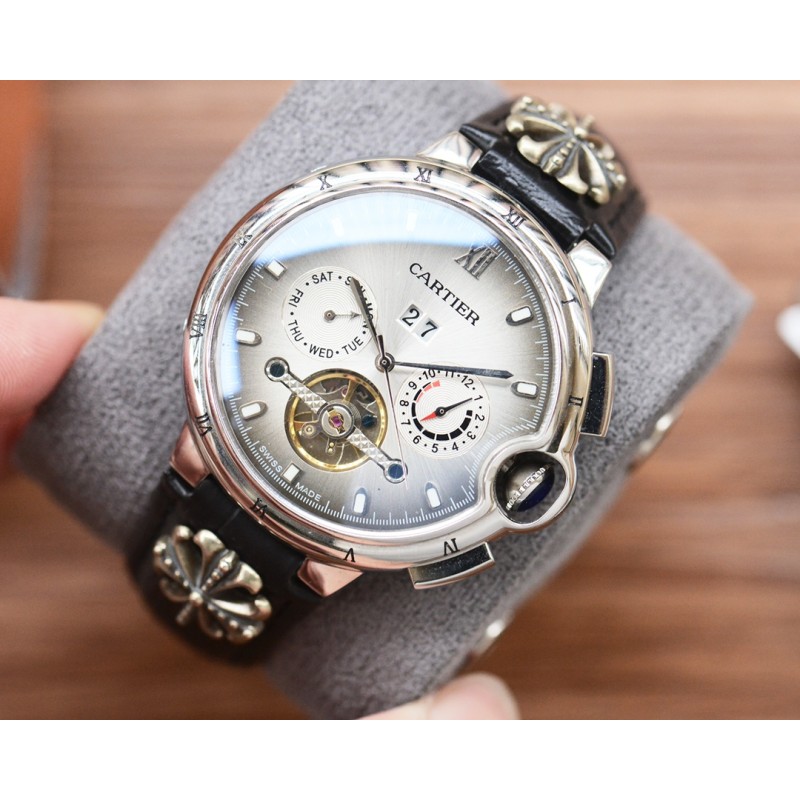 白600,金620 男人挚爱 多功能腕表 【最新】:卡地亚最佳设计独家首发 【类型】:精品男士腕表 【表带】:真牛皮表带 【机芯】:高端全自动机械机芯 【镜面】:矿物质强化玻璃(更高清) 品味高雅 浩瀚大气 匠心独运 腕间瑰宝 尺寸:直径41mm厚12mm热卖上市!欢迎转载!