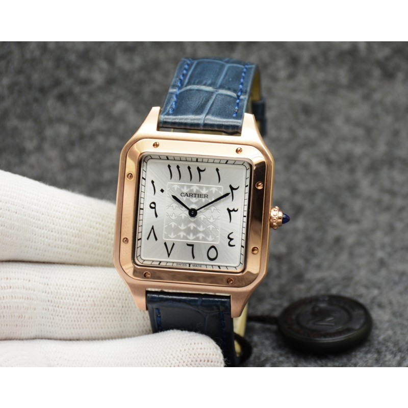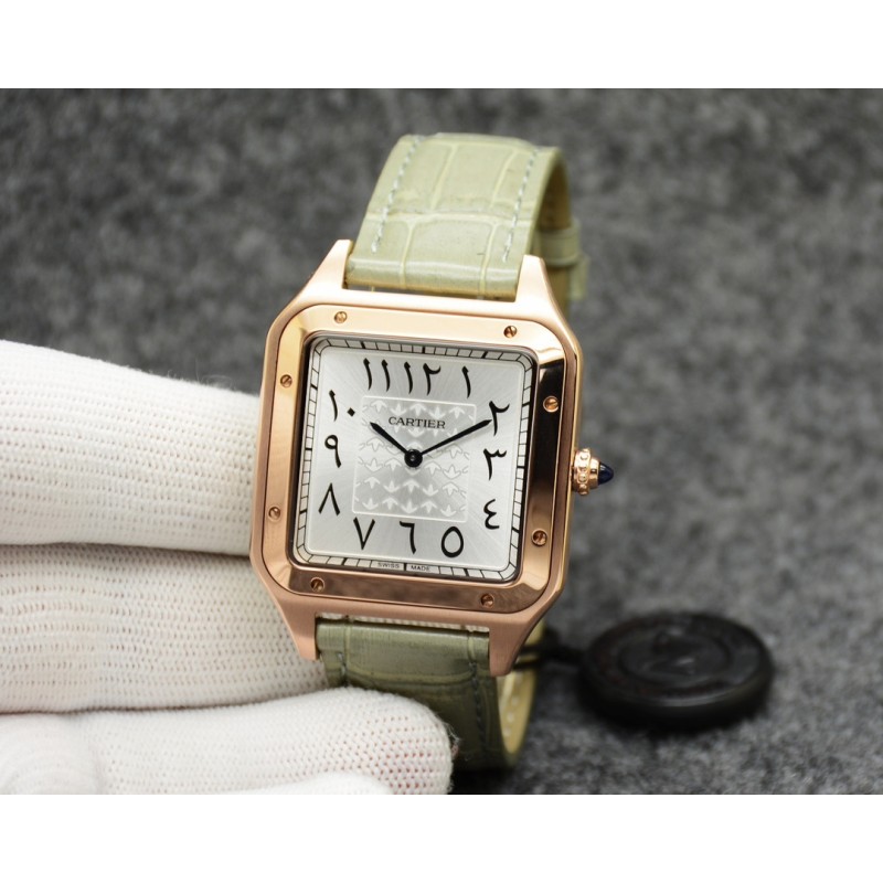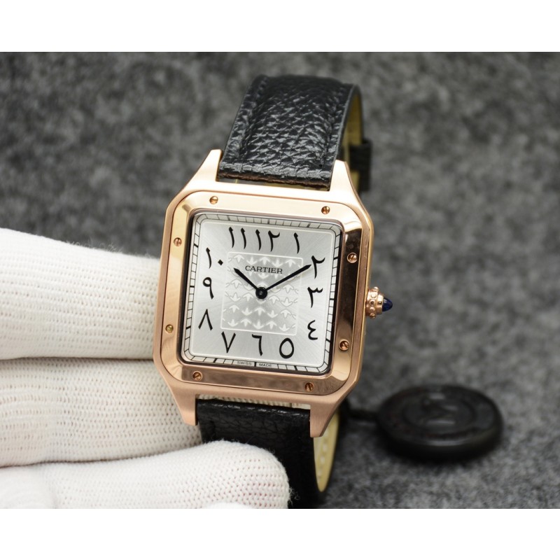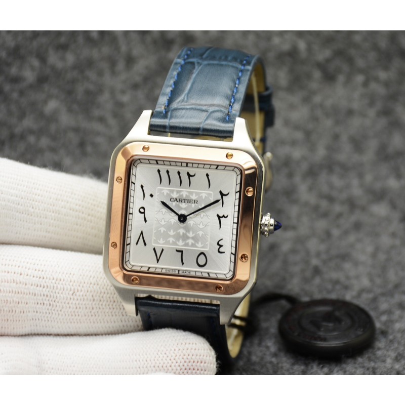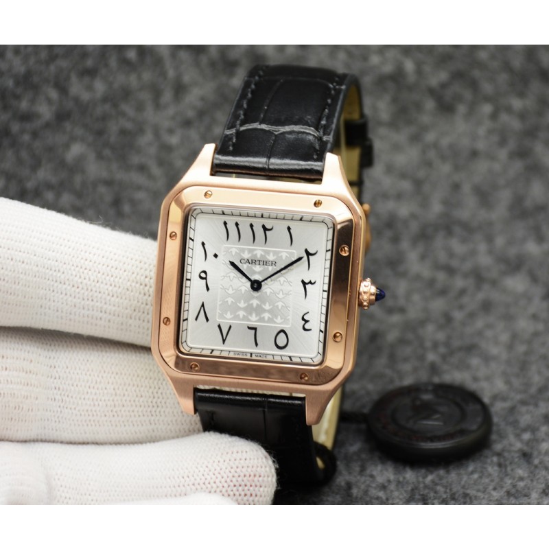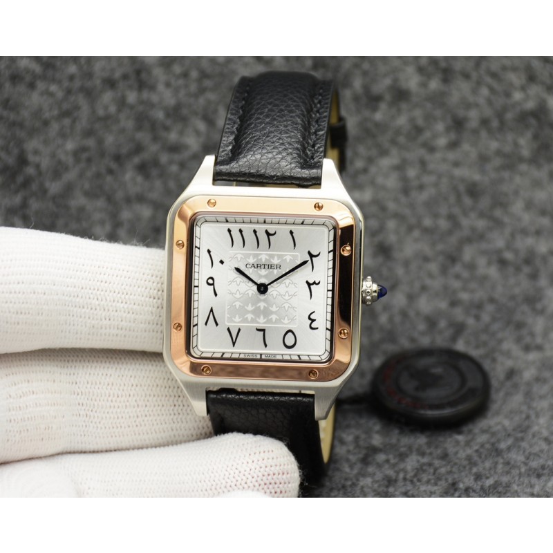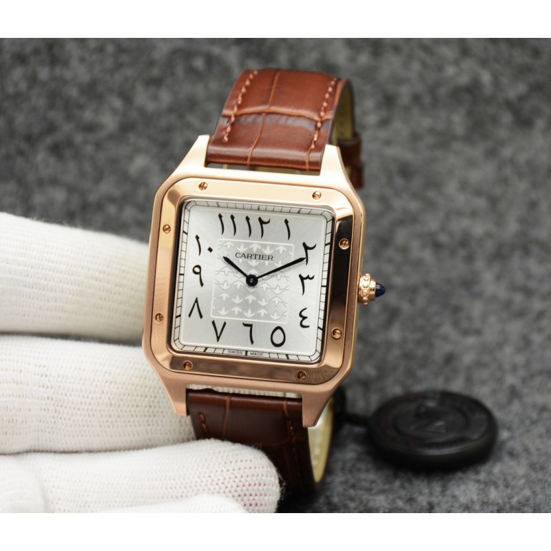 卡地亚腕表推出了全新的Santos-Dumont男女腕表,新系列的设计和Santos家族一脉相承。采用精钢表壳,内置瑞士进口石英机芯,深度防水,走时精准稳定,搭配进口真皮表带,潮流时尚大方【尺寸:大号35*46mm,中号31.5*43.5mm厚度:7.5mm】编号:286940