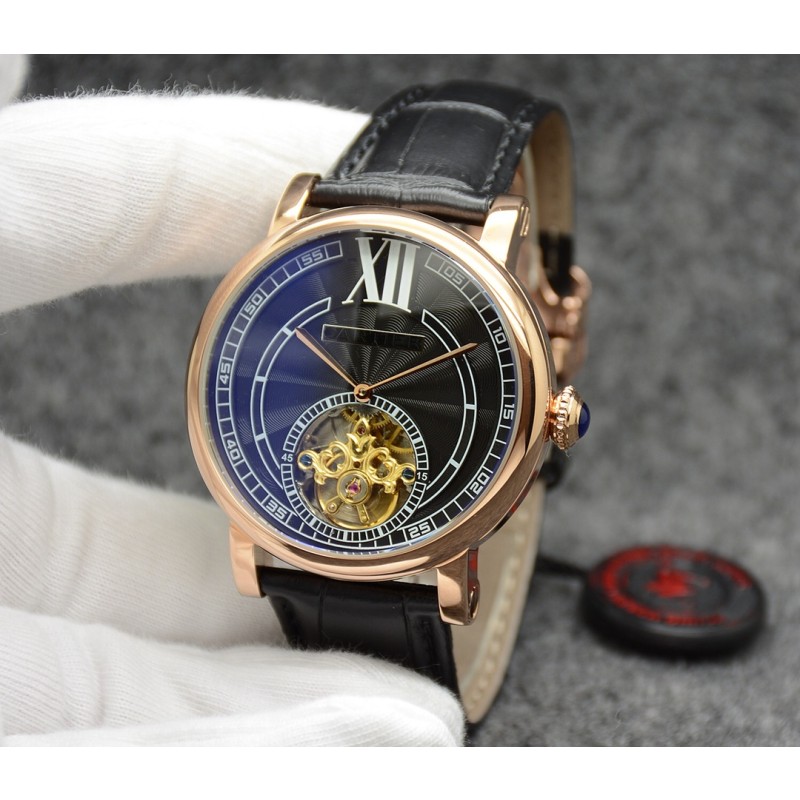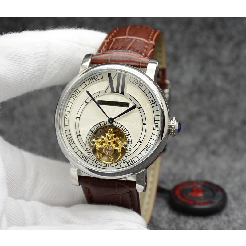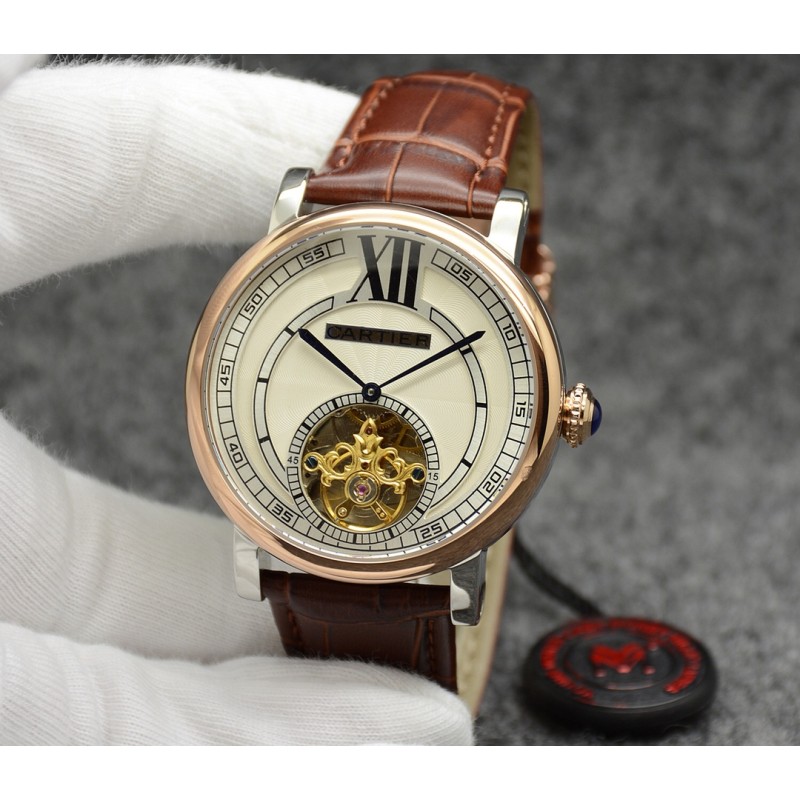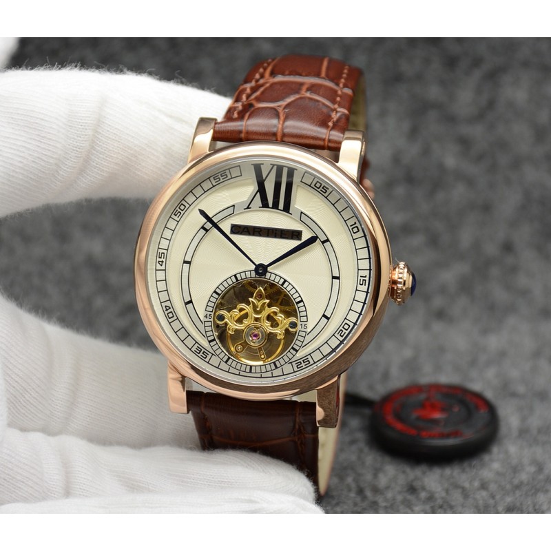 卡地亚 Cartier最新款男士机械腕表[悠闲] 精钢表壳,抛光打磨!大飞轮表盘设计,精雕细琢,尊贵大气上档次!内置全自动机械机芯,走时稳定!搭配进口牛皮表带,高硬度矿物质蓝光玻璃镜面,商务休闲皆宜!【尺寸:43.5mm 厚度:14.5mm】编号:386520 (金20)