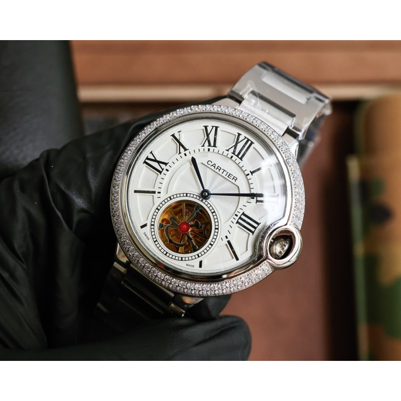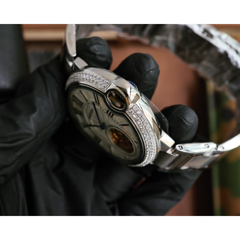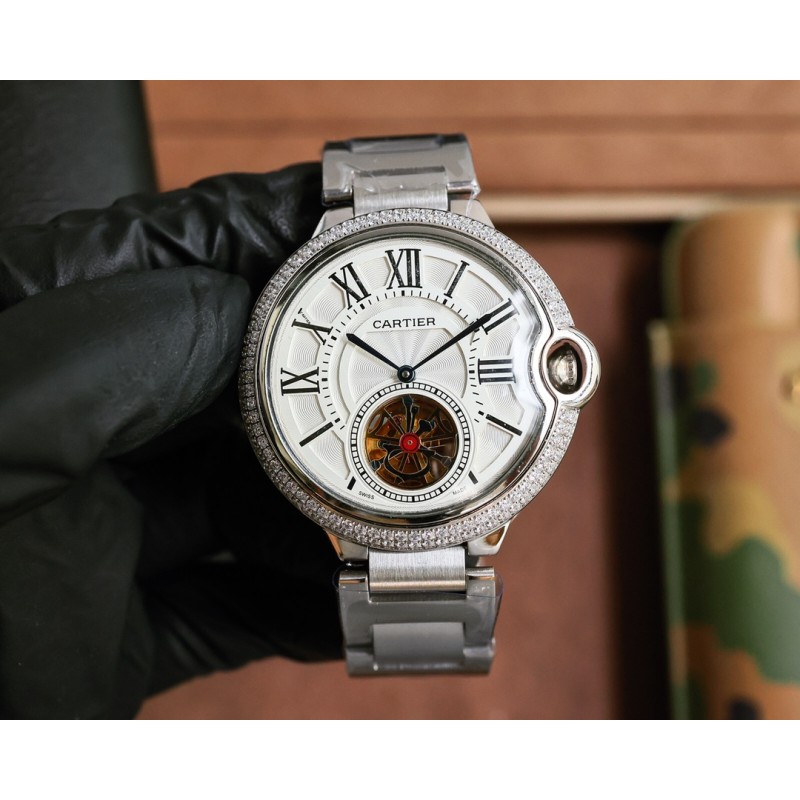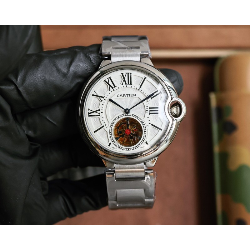 580卡地亚 Cartier全自动机械头层小牛皮拱形蓝光玻璃43*14mm岁月与商场的历练雕塑出的轮