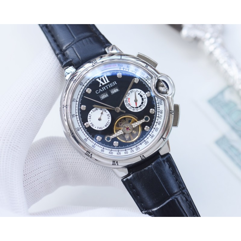 卡地亚 Cartier最新款男士机械腕表[悠闲] [鼓掌]精钢表壳,抛光打磨!表盘采用飞轮镂空设计