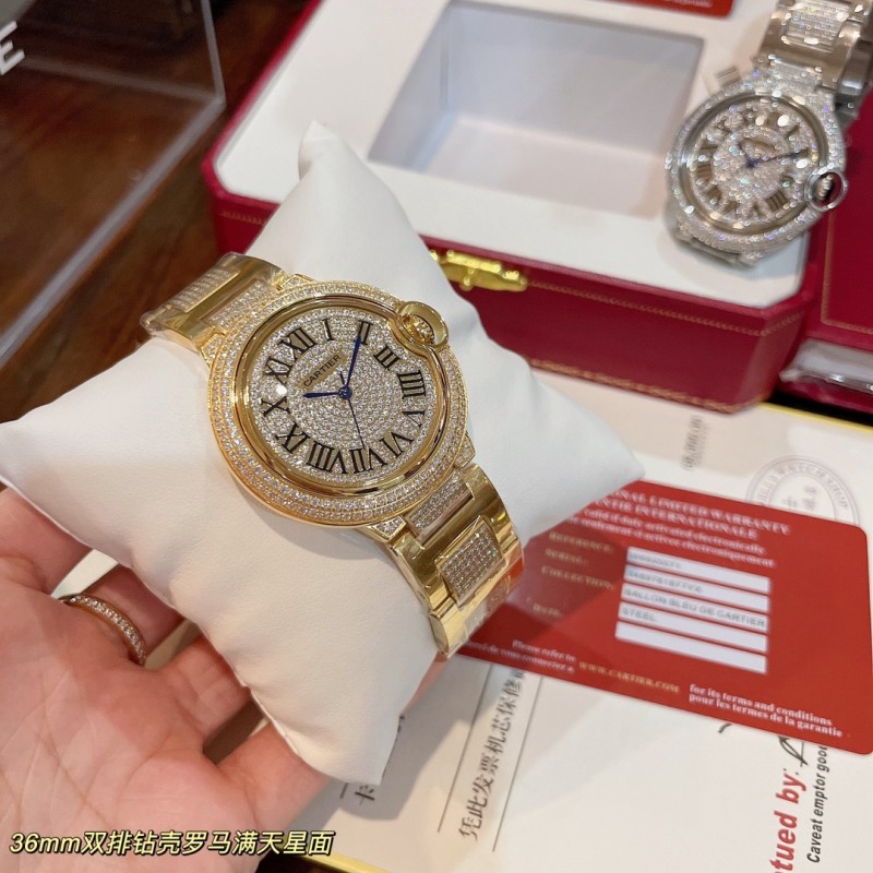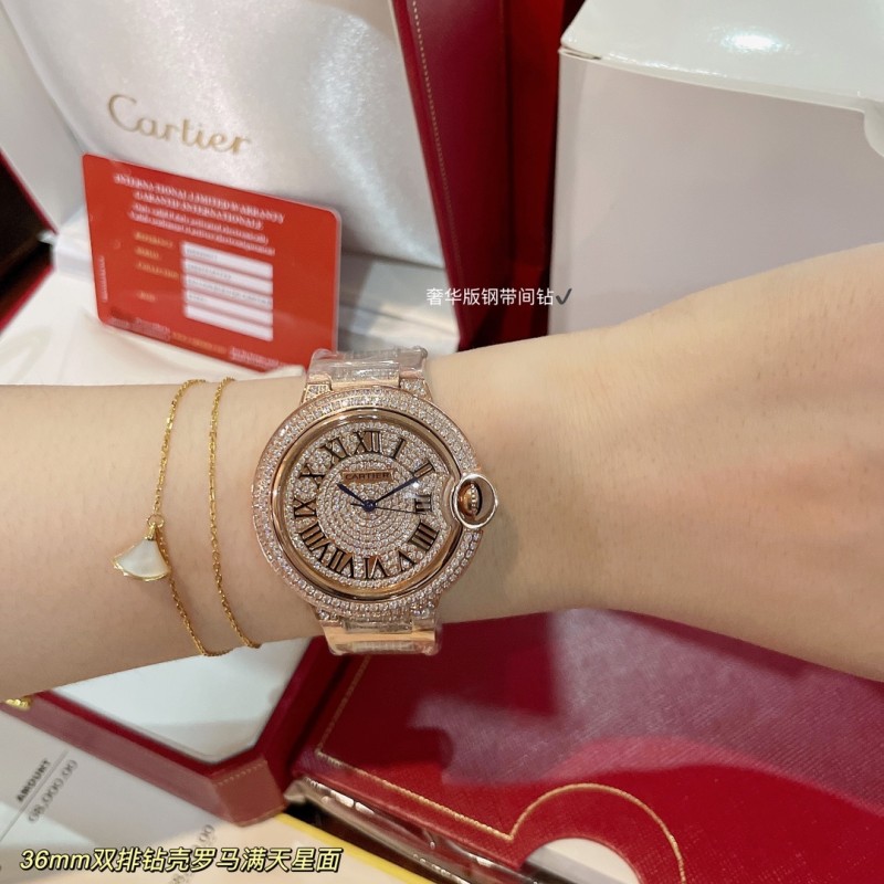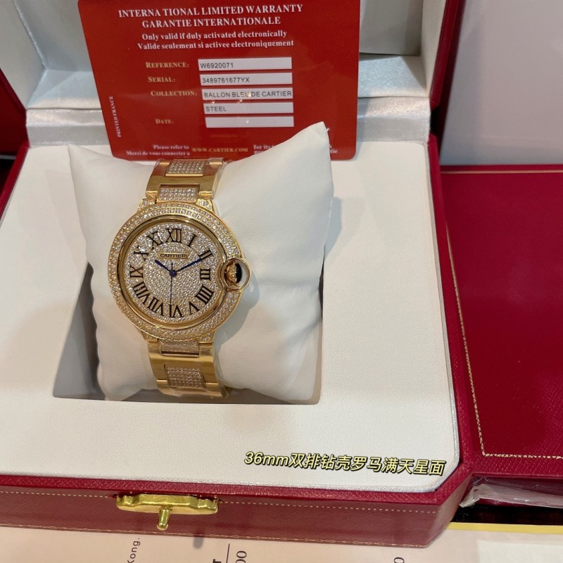 白钻600.玫620实拍卡地亚蓝气球满天星罗马面到货!经典出品 奢华版间钻钢带 专柜同步双排钻四角小钻颗颗饱满 全手工镶嵌满天星钻石面 奢华唯美 瑞士石英机芯 百搭尺寸36mm请认准独家细节高品质!