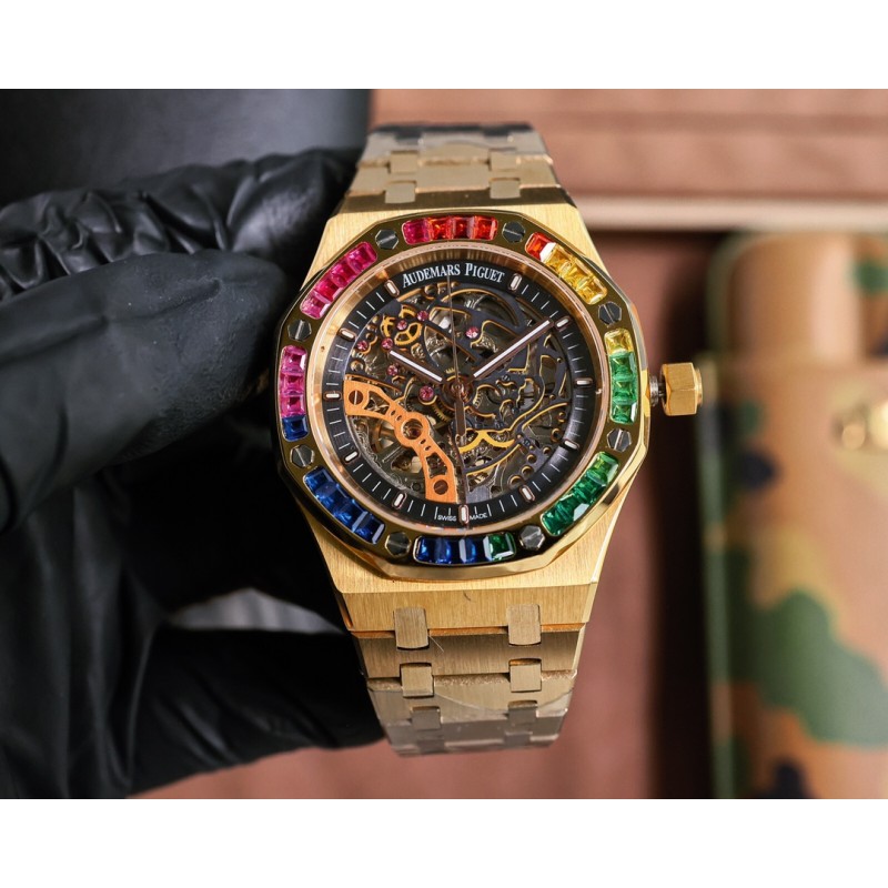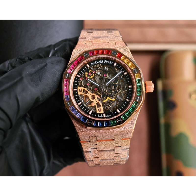 白壳800 玫金820 爱彼Audemars Piguet全新推出皇家橡树系列双摆轮镂空霜金腕表