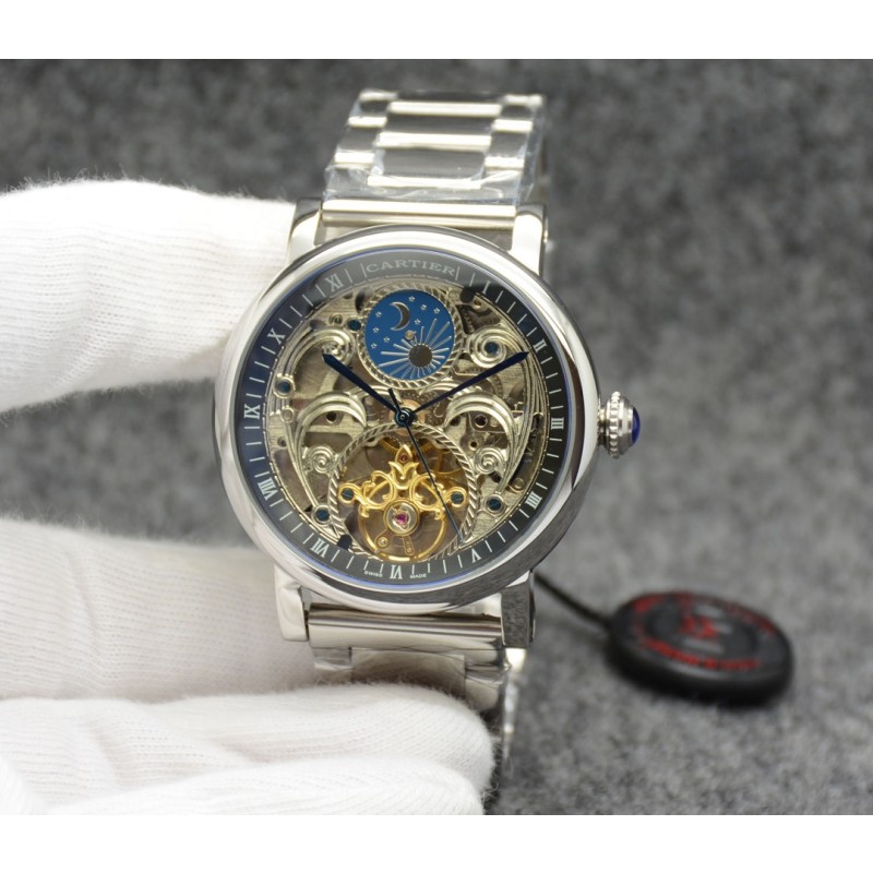 卡地亚Cartier最新款男士机械腕表[鼓掌]精钢表壳,抛光打磨!表盘采用飞轮镂空设计,精雕细琢,尊