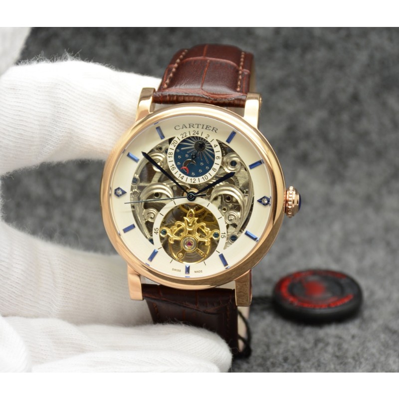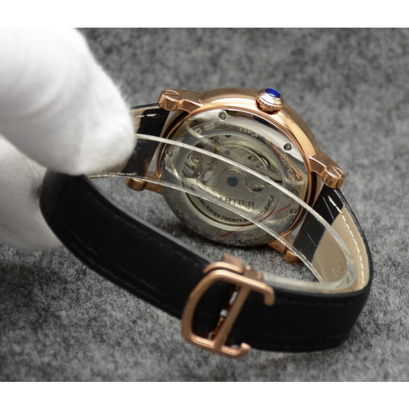 卡地亚 Cartier最新款男士机械腕表[悠闲] [鼓掌]精钢表壳,抛光打磨!表盘采用飞轮镂空设计,精雕细琢,尊贵大气上档次!内置全自动机械机芯,走时稳定!搭配进口牛皮表带,高硬度矿物质蓝光玻璃镜面,商务休闲皆宜!【尺寸:43.5mm 厚度:14.5mm】编号:386920 (金20)